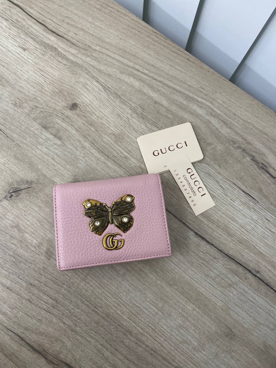 Представляем элегантный кошелек Gucci LUX-65190, выполненный в нежном розовом цвете. Этот компактный аксессуар украшен изысканным тиснением бабочки и культовым логотипом GG, что придает ему особый шарм. Кошелек Gucci LUX-65190 идеально подходит для хранения банковских карт, наличных и других мелочей, необходимых в повседневной жизни, сочетая в себе утонченный стиль и практичность.
