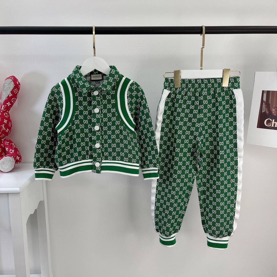Костюм Gucci LUX-81625 – это стильный детский комплект, сочетающий в себе спортивный стиль и узнаваемый дизайн. Зеленый цвет костюма с повторяющимся логотипом бренда создает яркий и запоминающийся образ, который подойдет для повседневной носки и активного отдыха.