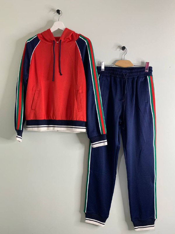 Представленный спортивный костюм Gucci LUX-56170 — это стильное и комфортное решение для повседневной носки. Комплект состоит из худи с капюшоном и брюк, выполненных в яркой цветовой гамме. Акцент сделан на узнаваемых полосах бренда, добавляющих спортивному образу эксклюзивности.