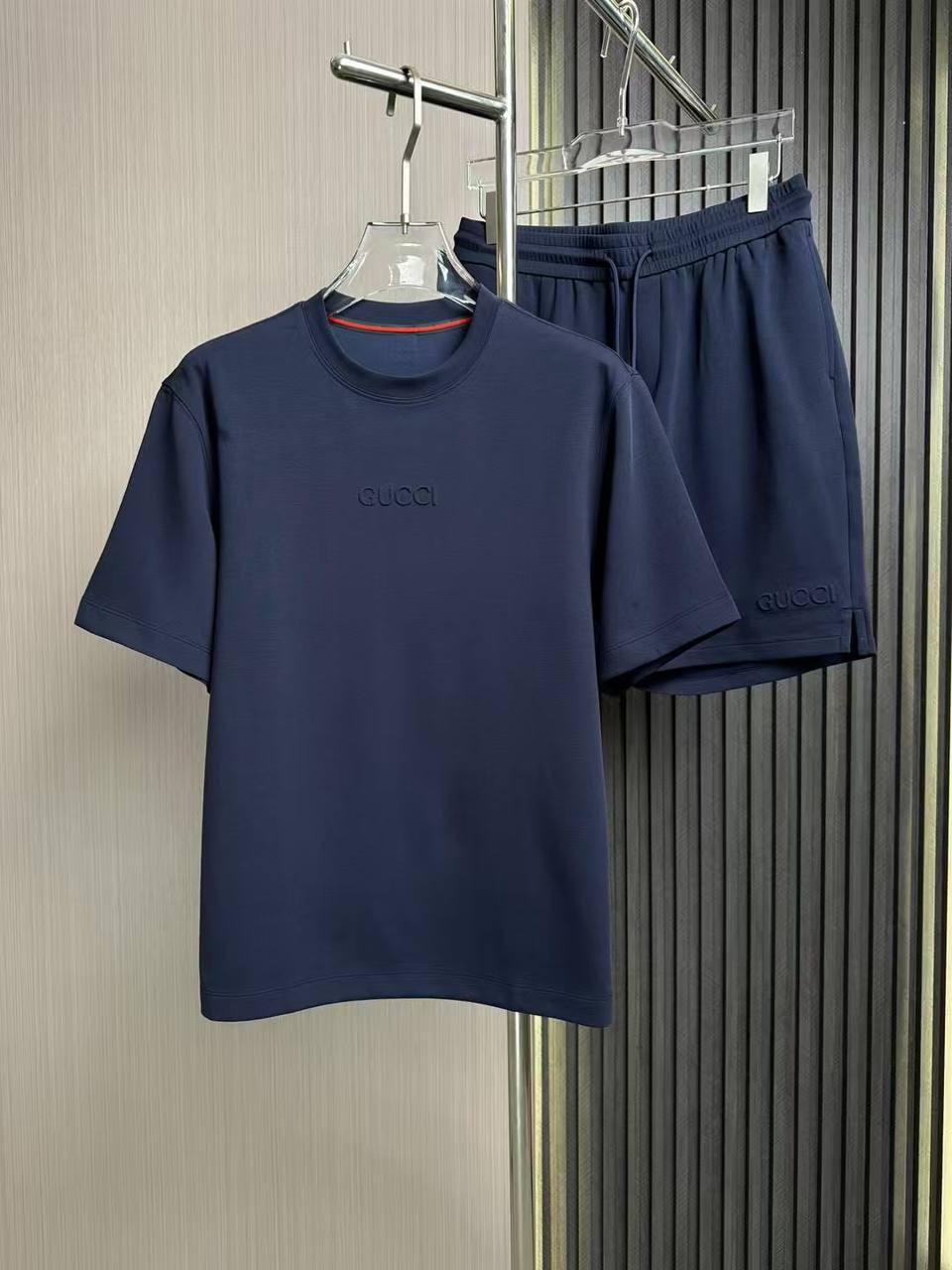 Костюм мужской Gucci LUX-118283 представлен в спортивном стиле, выполнен в темно-синем цвете. В комплект входит футболка с короткими рукавами и шорты. Костюм подойдет как для повседневной носки, так и для занятий спортом.