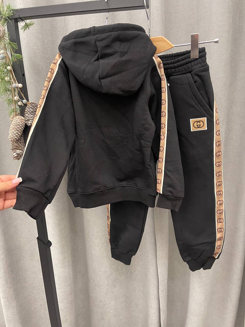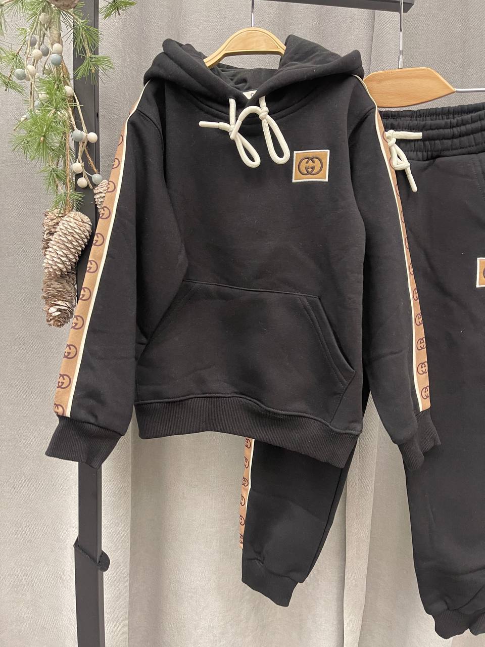 Костюм спортивный Gucci LUX-100677 представляет собой стильный комплект, состоящий из худи и спортивных брюк. Он выполнен в классическом черном цвете с узнаваемыми брендированными полосами по бокам. Этот спортивный костюм идеально подходит для повседневной носки, обеспечивая комфорт и узнаваемый стиль.