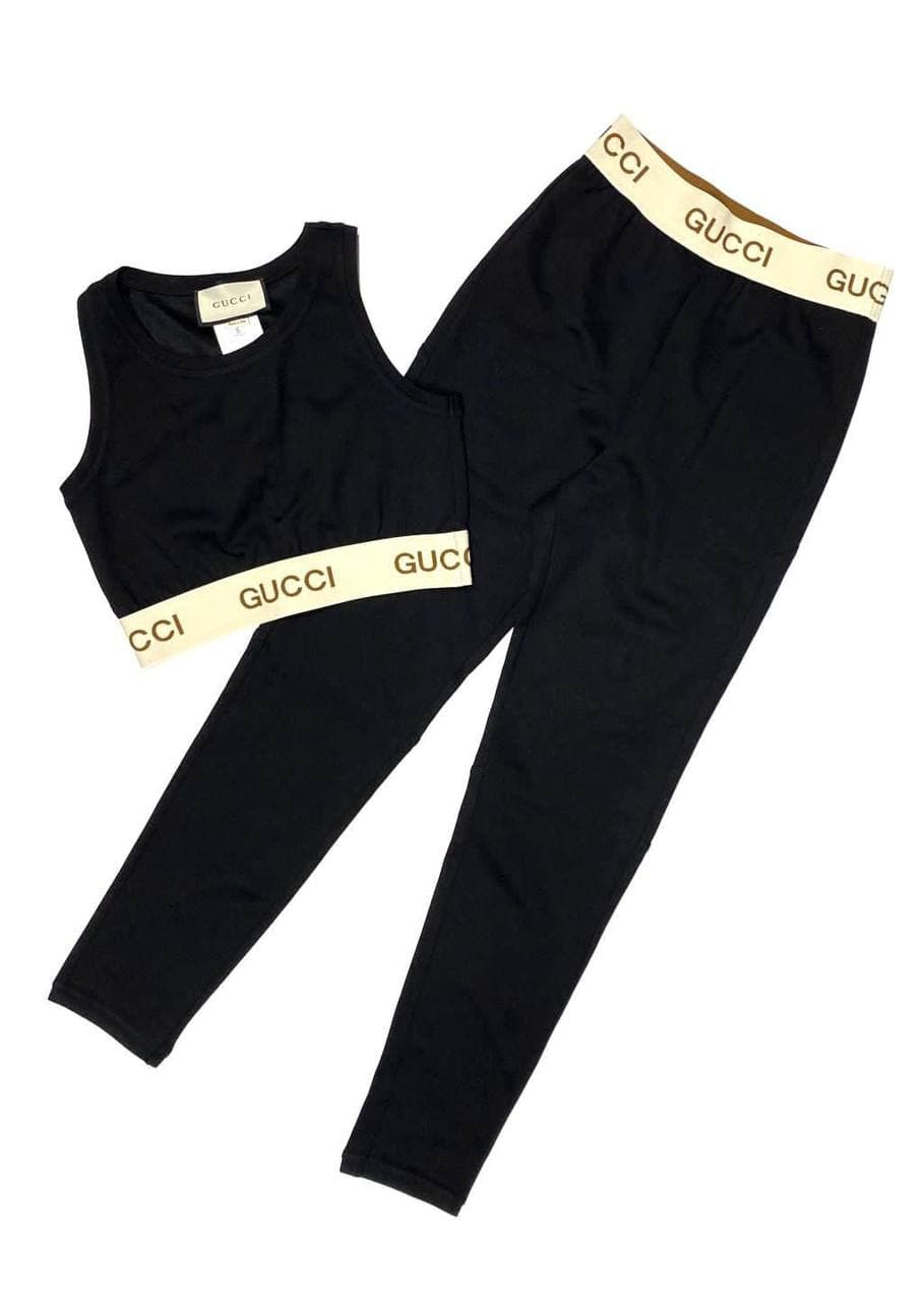 Представляем спортивный костюм Gucci LUX-62740, сочетающий в себе комфорт и узнаваемый стиль. Этот комплект, состоящий из топа-бюстье и брюк, выполнен в классическом черном цвете и украшен узнаваемым брендовым поясом с надписью Gucci. Идеальный выбор для создания модных спортивных и повседневных образов.