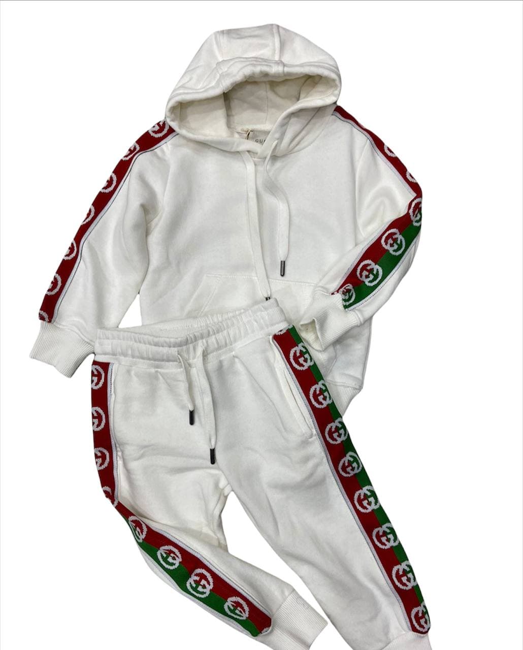 Gucci Костюм спортивный LUX-62760 представляет собой стильный и комфортный комплект, выполненный в современном спортивном дизайне. Этот костюм идеально подходит для создания расслабленных, но при этом элегантных образов. Акцент в дизайне сделан на узнаваемом узоре бренда, который украшает рукава толстовки и боковые стороны брюк, добавляя изделию эксклюзивности.