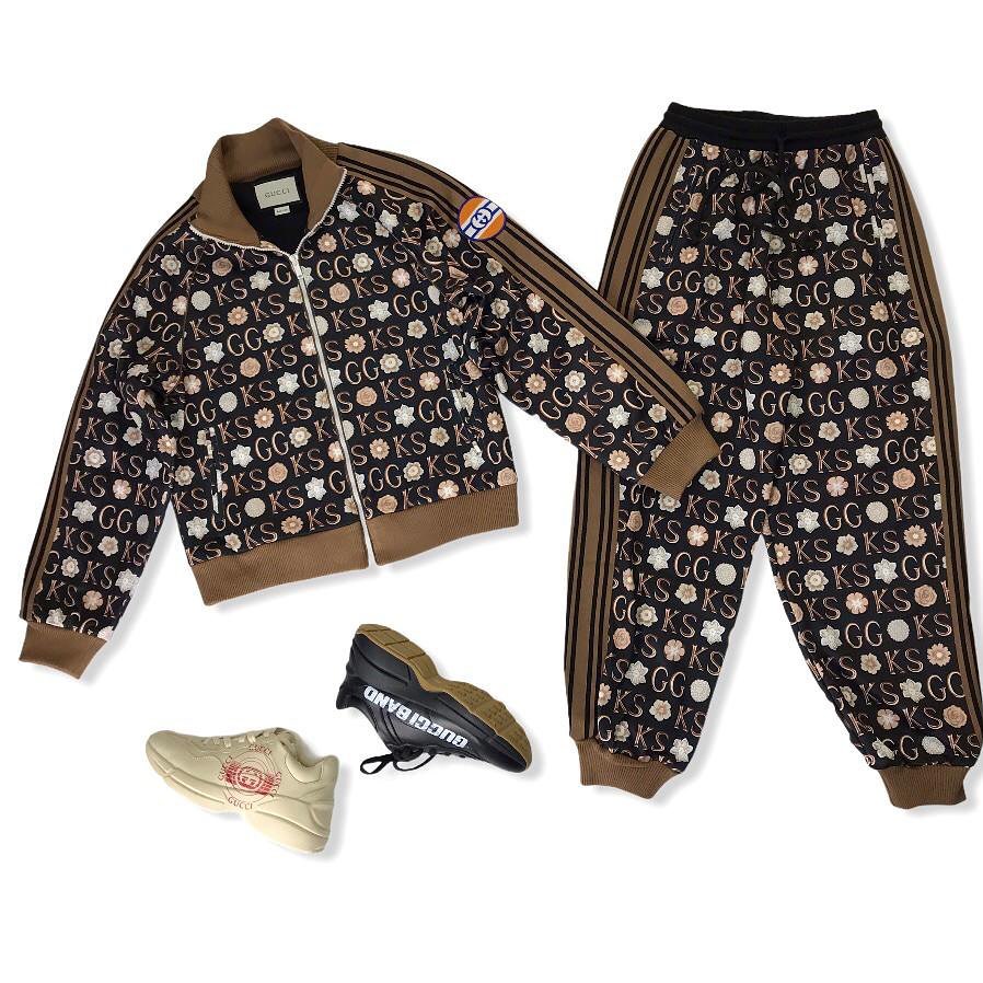 Спортивный костюм Gucci LUX-42392 — это стильный и узнаваемый комплект, выполненный в классическом спортивном стиле. Комплект состоит из олимпийки на молнии и брюк, декорированных фирменным принтом. Этот костюм идеально подойдет для создания модного повседневного образа или для занятий спортом.