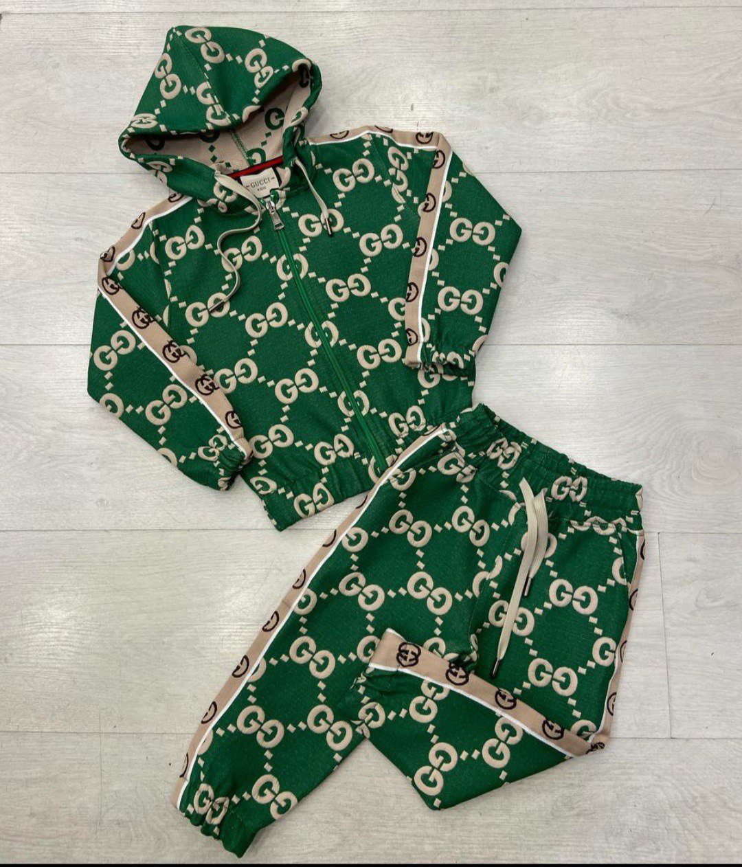 Костюм спортивный Gucci LUX-85129 — это воплощение стиля и комфорта в мире спортивной одежды. Костюм выполнен в насыщенном зеленом цвете с узнаваемым логотипом бренда и бежевыми контрастными полосами. Идеально подходит для повседневной носки, занятий спортом или активного отдыха.
