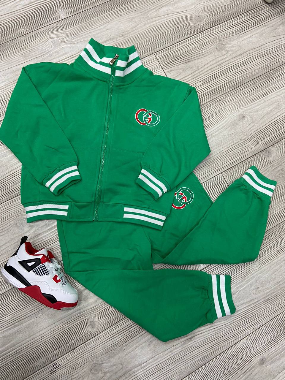 Костюм спортивный Gucci LUX-69120 — это стильный и комфортный комплект, идеально подходящий для активного отдыха и повседневной носки. Дизайн костюма выполнен в современном стиле, сочетая яркий зеленый цвет с контрастными белыми полосами на манжетах и воротнике, а также узнаваемым логотипом Gucci.