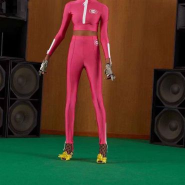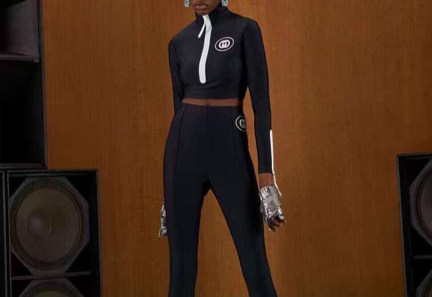 Костюм спортивный Gucci LUX-77154 — это воплощение спортивного шика. Костюм выполнен в черном цвете, состоящий из облегающих брюк и укороченной кофты с длинными рукавами. На кофте и брюках имеются фирменные логотипы, которые подчеркивают узнаваемость бренда. Костюм предназначен для создания стильных и комфортных образов.