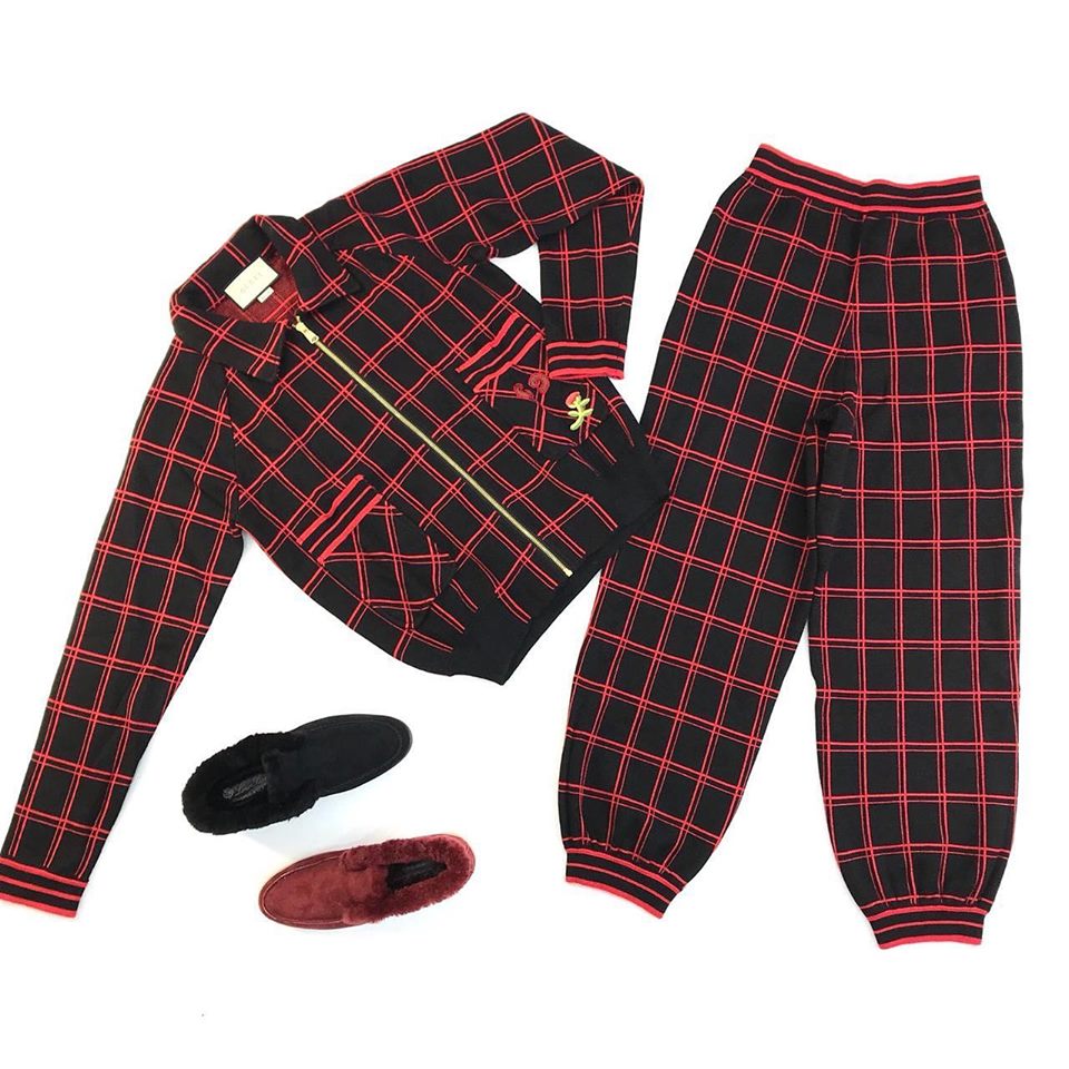Этот спортивный костюм Gucci LUX-20062 женский представлен в эффектном дизайне в клетку "принц Уэльский" в черных и красных тонах. Комплект, состоящий из бомбера на молнии и брюк, идеально подойдет для создания стильных повседневных и спортивных образов. Отличительной деталью является вышивка в виде розы на бомбере.