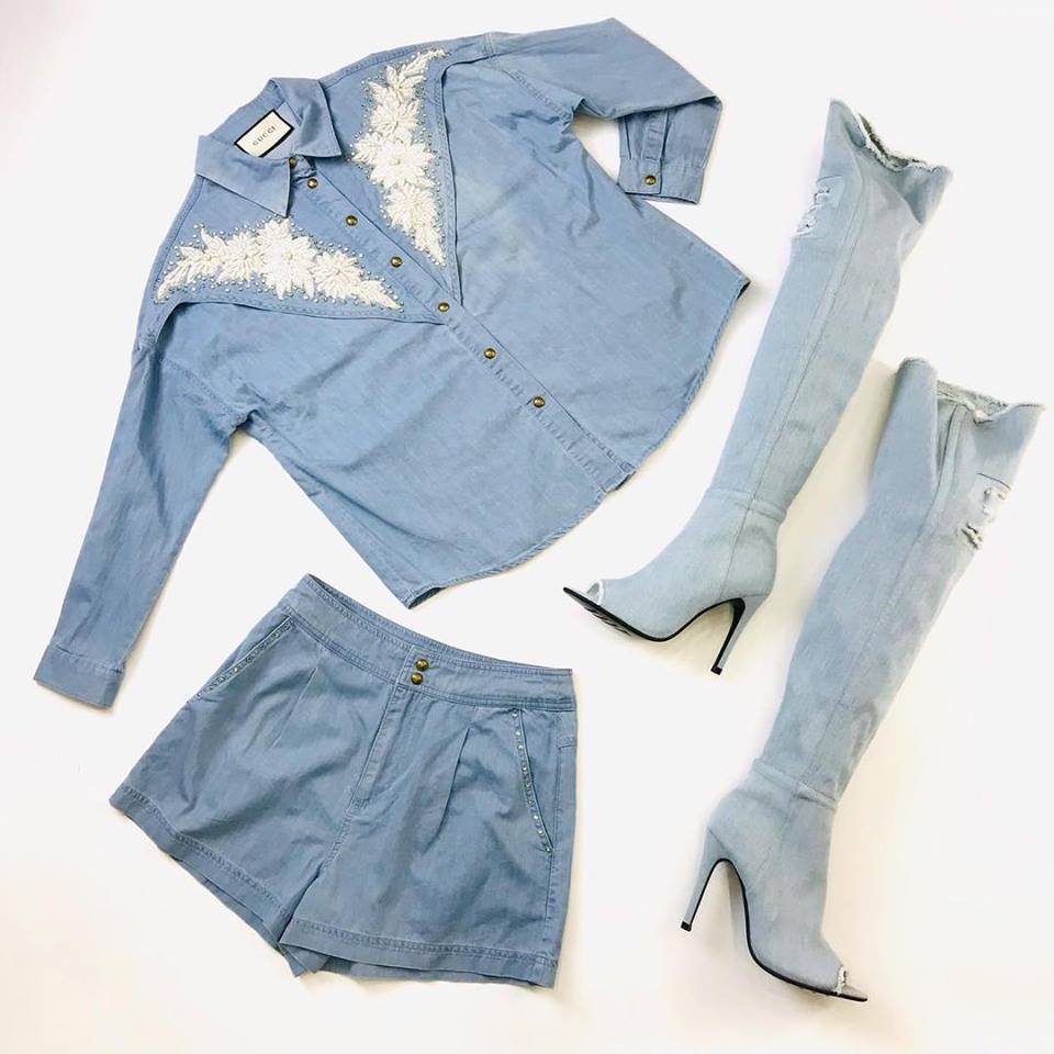 Женский костюм Gucci LUX-10380 представляет собой стильный и модный образ, состоящий из рубашки и шорт. Модель выполнена в джинсовом стиле, декорирована изысканной вышивкой и бисером, что придает ей особый шарм. Костюм Gucci идеально подходит для создания ярких и запоминающихся летних образов.