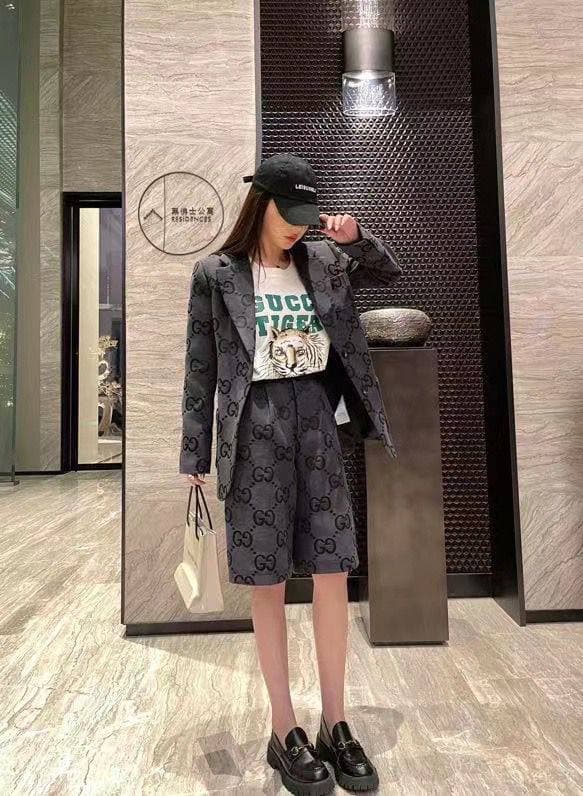 Костюм женский Gucci LUX-63967 представляет собой элегантный и модный ансамбль, состоящий из пиджака и шорт. Дизайн костюма выполнен в фирменном стиле Gucci, с узнаваемым принтом GG, что придает ему роскошный и узнаваемый вид. Этот костюм идеально подойдет для создания стильных образов как на каждый день, так и для особых случаев.