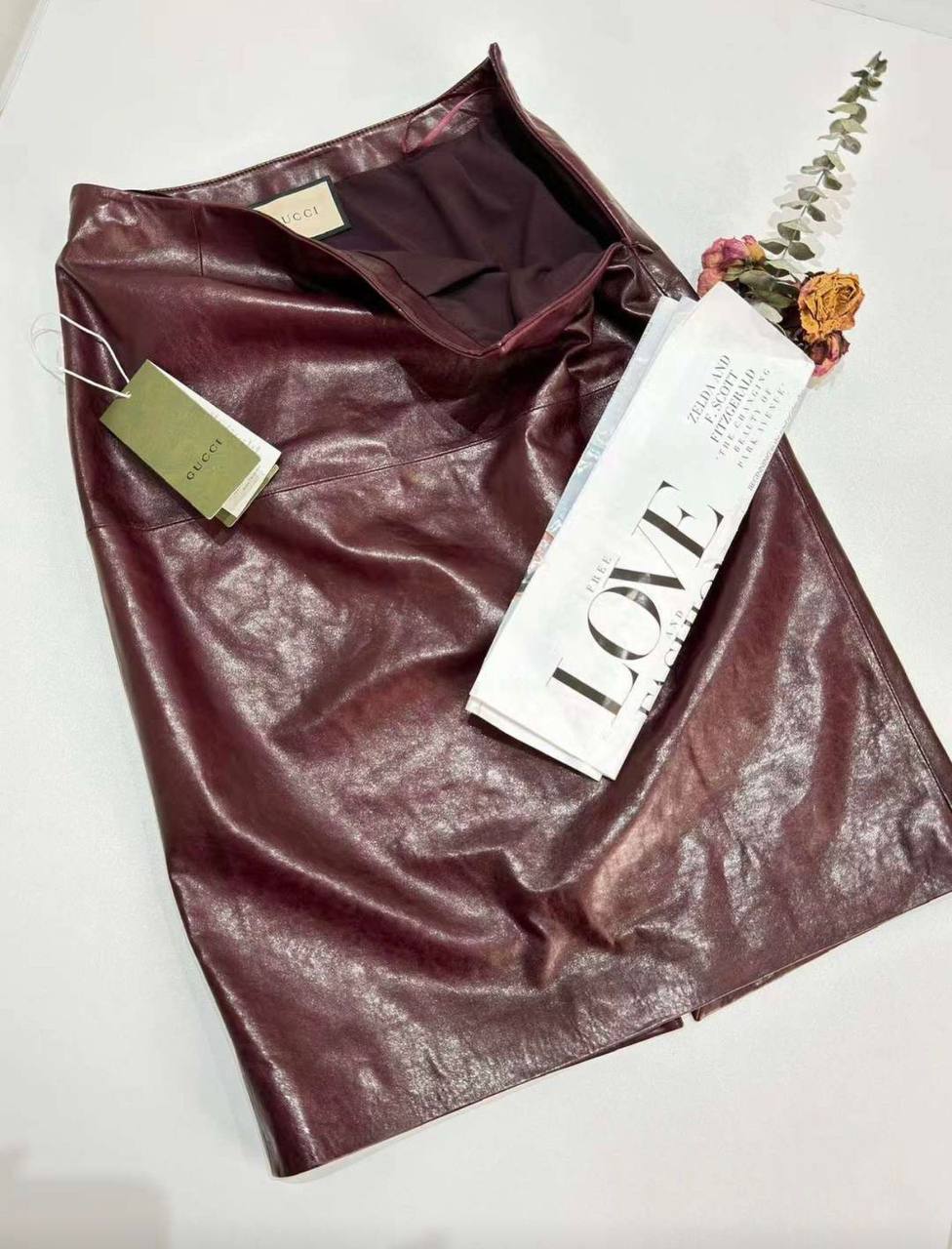 Кожаная юбка Gucci LUX-110728 – это элегантный предмет гардероба от известного бренда. Юбка выполнена в глубоком бордовом цвете, что придает ей изысканный вид. Она подходит для создания различных образов, от повседневных до вечерних.