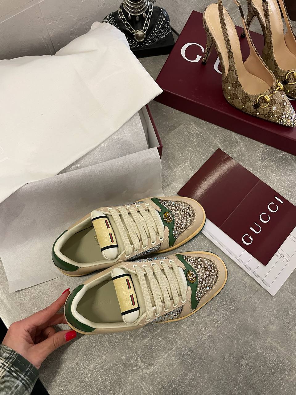 Кроссовки Gucci LUX-114181 — это воплощение элегантности и стиля от известного бренда. Кроссовки выполнены в классическом стиле, сочетая нейтральные цвета с яркими акцентами. Этот предмет гардероба подойдет для создания как повседневных, так и более формальных образов.