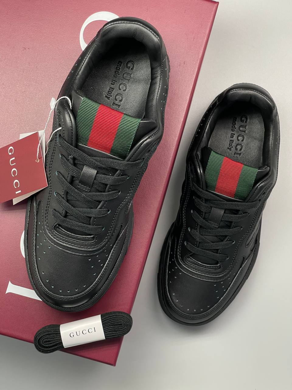 Gucci LUX-131821 – стильные и элегантные кроссовки, которые идеально подойдут для создания модного образа. Аккуратный дизайн и качественные материалы делают эту обувь отличным выбором для повседневной носки.