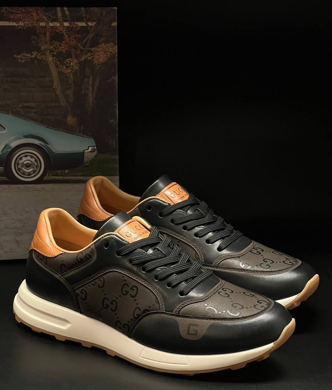 Кроссовки мужские Gucci LUX-77248 представляют собой стильную модель в классическом спортивном стиле. Кроссовки выполнены в сочетании черного и коричневого цветов с фирменным узором бренда. Идеально подойдут для создания повседневных образов, сочетая в себе комфорт и узнаваемый дизайн.