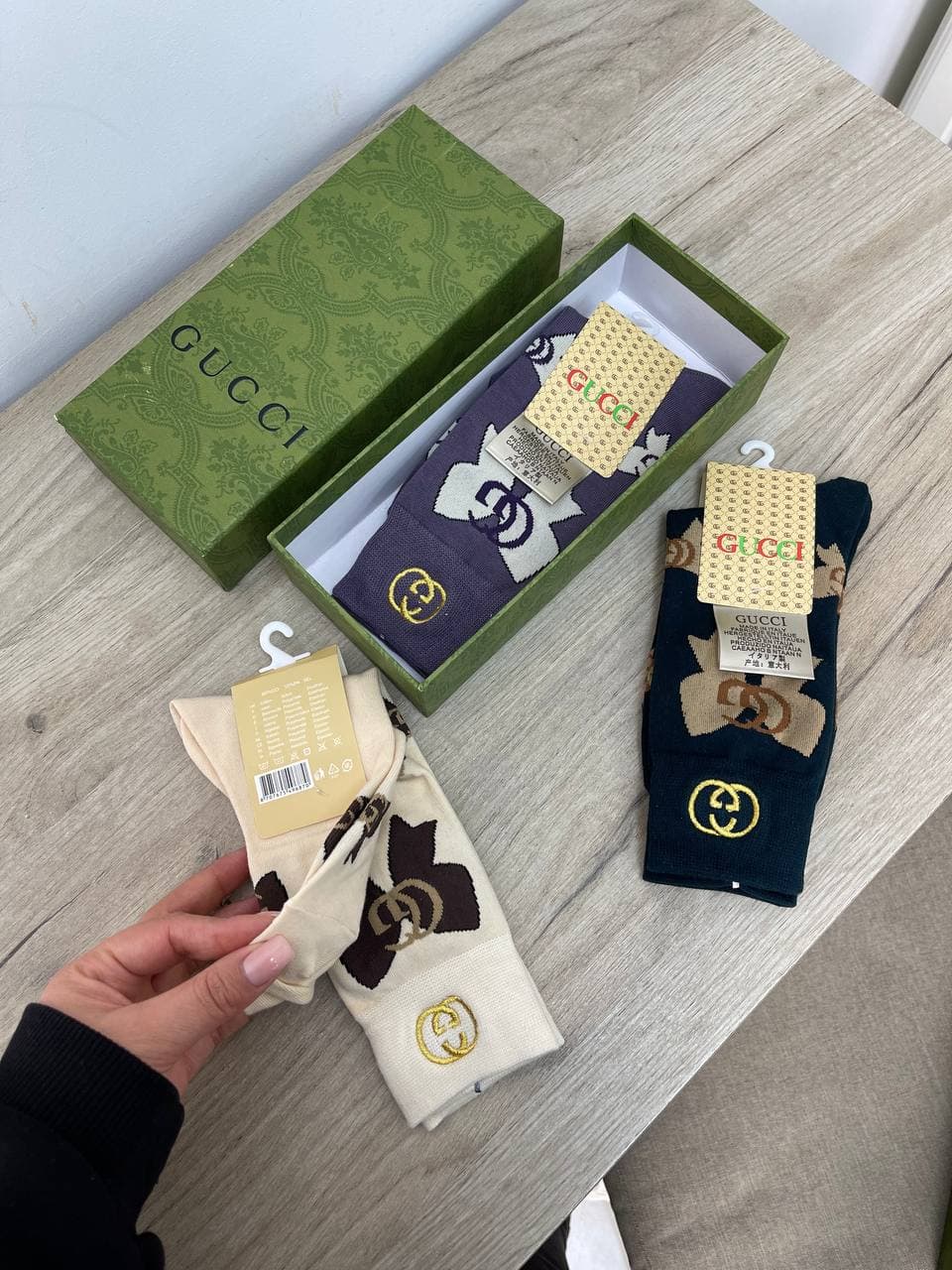 Представленные носки Gucci LUX-56807 — это стильный и комфортный аксессуар, выполненный в узнаваемом дизайне бренда. Они идеально дополнят повседневный или спортивный образ, добавляя ему нотку роскоши.