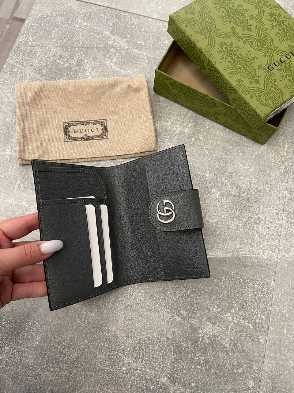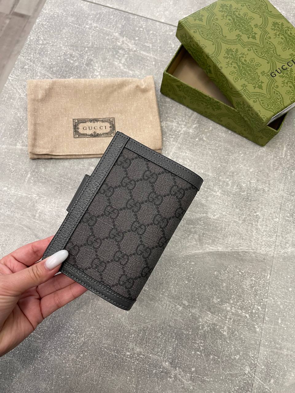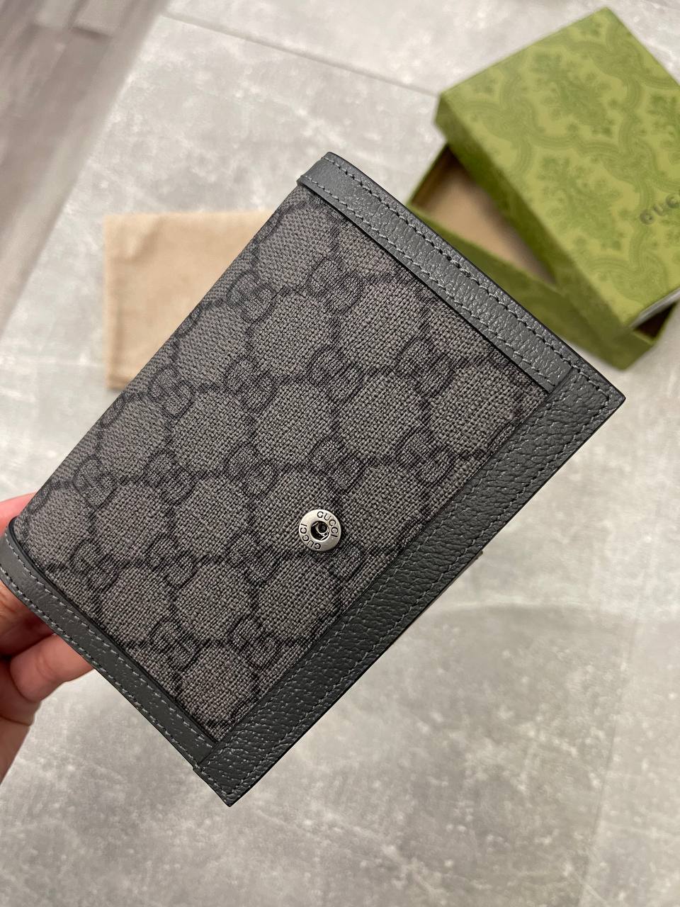 Обложка на паспорт Gucci LUX-98777 выполнена в классическом стиле, сочетающем элегантность и функциональность. Тёмный цвет и узнаваемый узор создают изысканный вид. Предназначена для защиты паспорта и подчеркивает статус владельца.