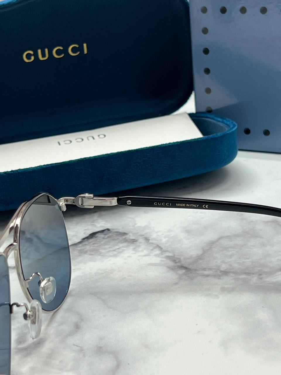 Очки Gucci LUX-91731 – это стильный аксессуар, который сочетает в себе элегантность и функциональность. Очки выполнены в форме авиаторов, сочетая в себе классический дизайн и современные тренды. Синие линзы обеспечивают надежную защиту от солнца и придают образу загадочность.