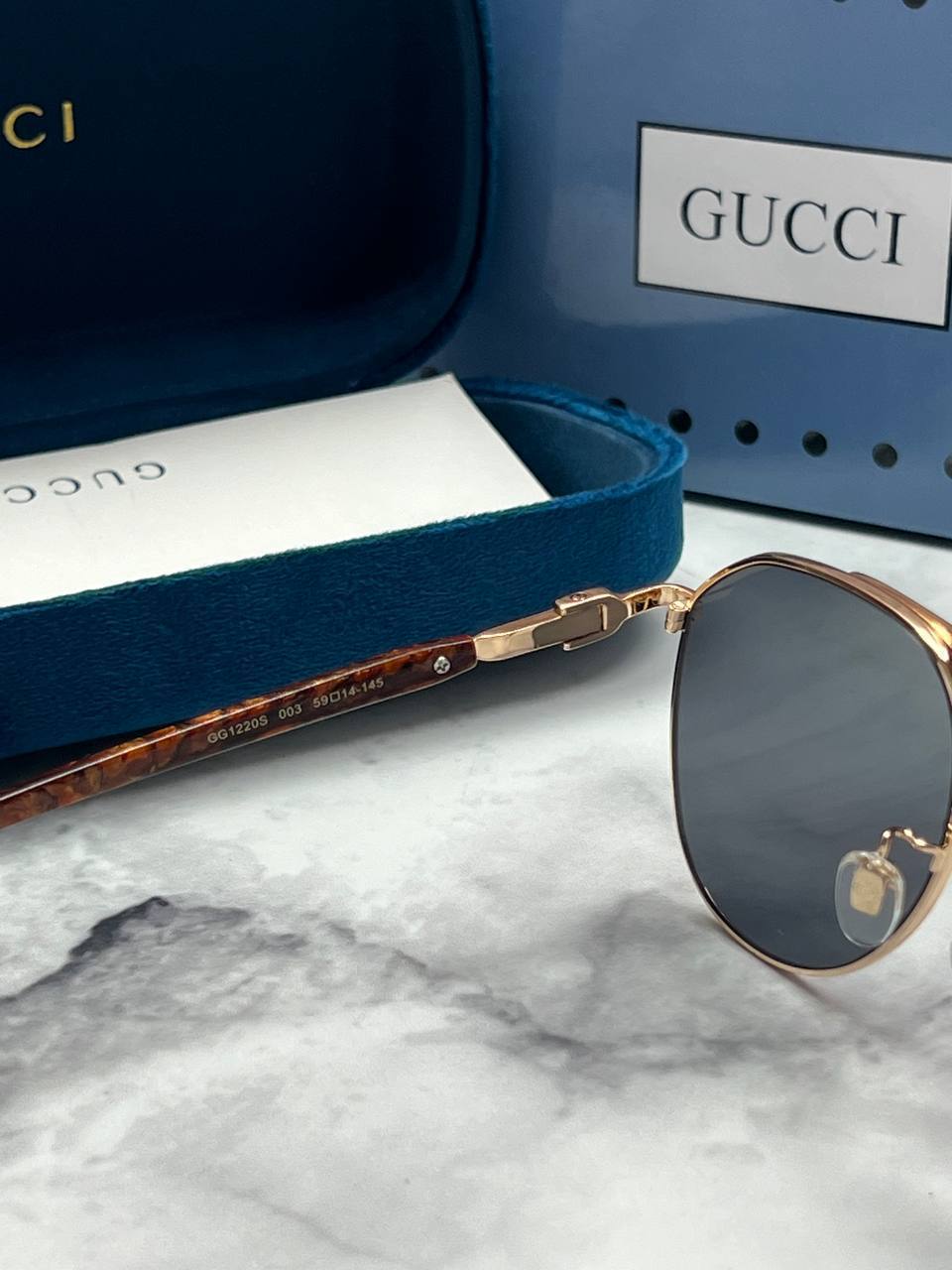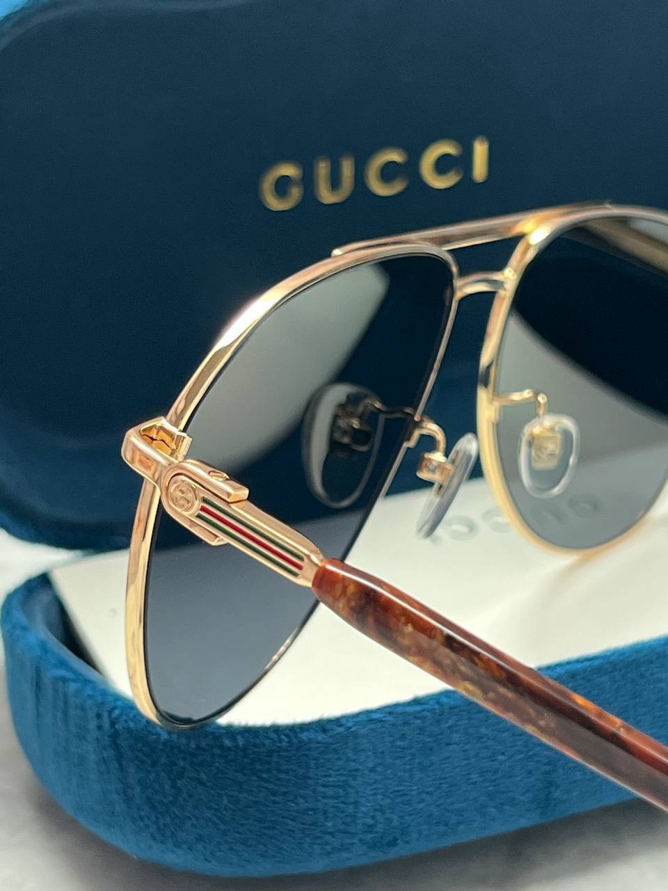 Очки Gucci LUX-91732 – это стильный аксессуар, который сочетает в себе элегантность и функциональность. Оправа выполнена в золотистом цвете, а линзы — в темном оттенке, что обеспечивает эффективную защиту от солнца. Данная модель очков станет отличным дополнением к любому образу.