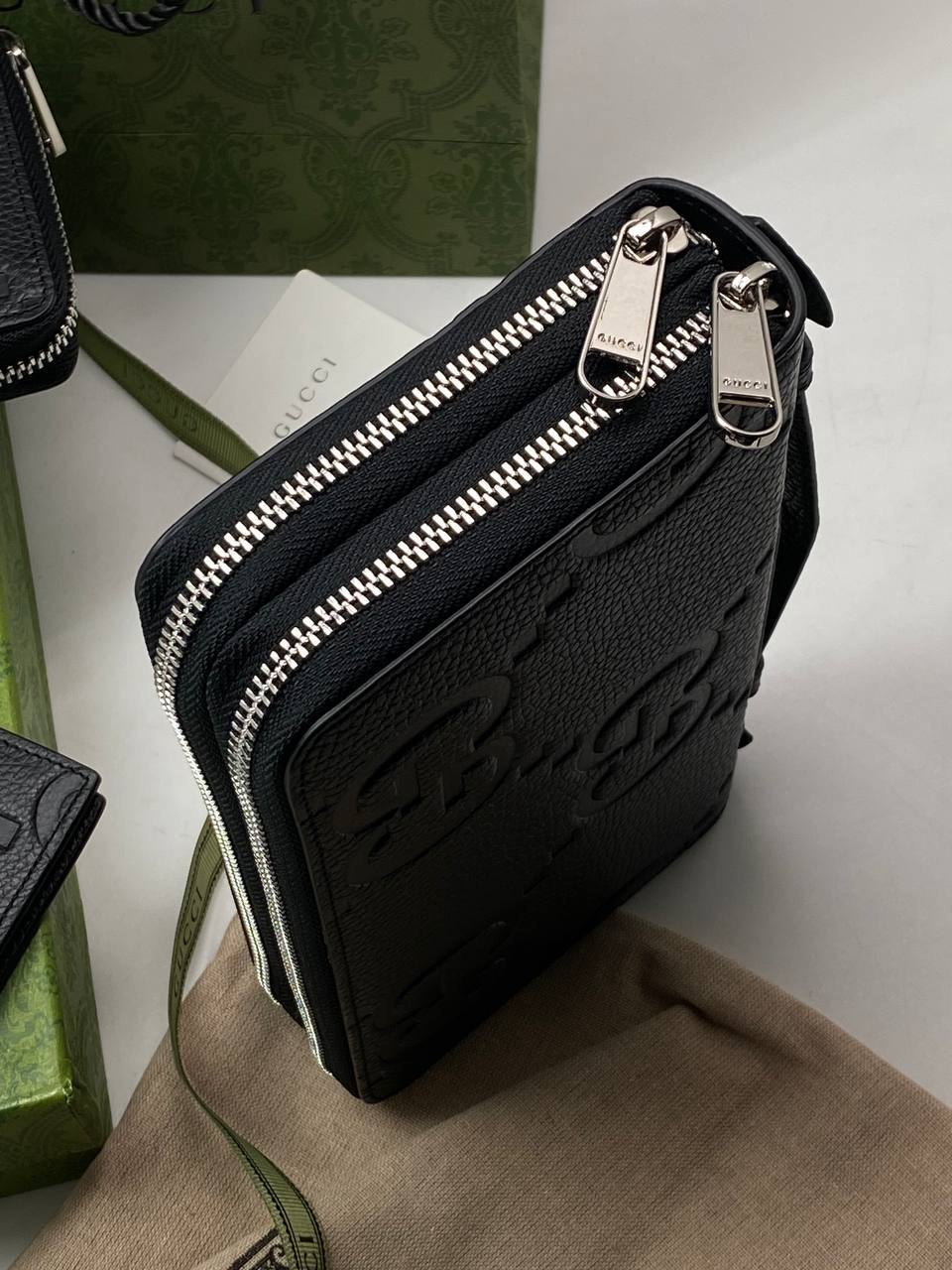 Органайзер Gucci LUX-107196 — это стильный аксессуар от известного бренда. Органайзер выполнен в классическом черном цвете с рельефным логотипом бренда. Он идеально подходит для хранения и организации важных вещей, таких как деньги, карты и документы.