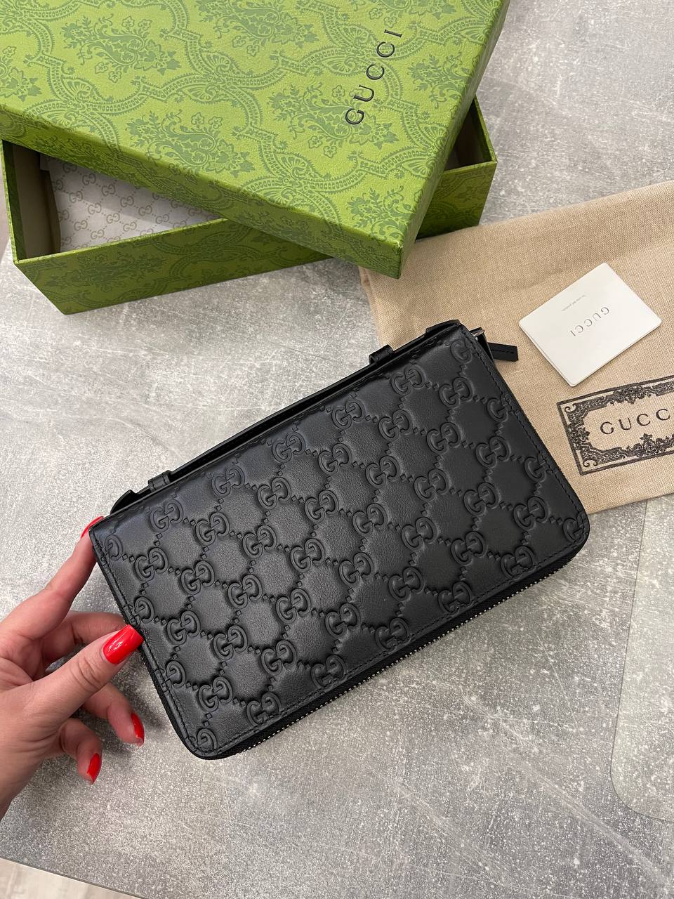 Органайзер Gucci LUX-102853 — это стильный аксессуар, который сочетает в себе элегантность и функциональность. Черный органайзер с тиснением в виде монограммы бренда. Он подойдет для хранения важных документов, карт и других мелочей.