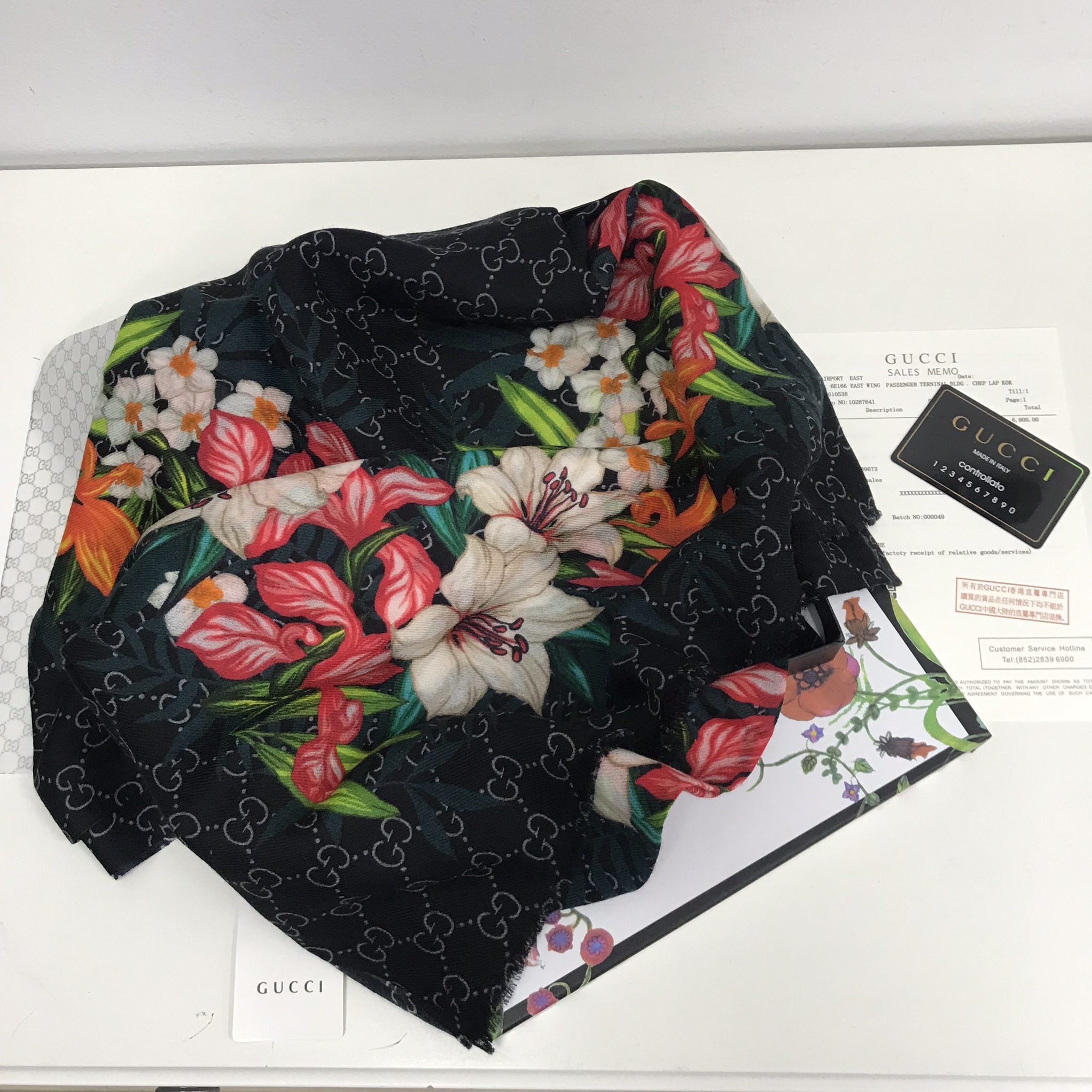 Палантин Gucci LUX-25287 представляет собой изысканный аксессуар, сочетающий в себе классический стиль бренда с ярким, тропическим принтом. Акцентный цветочный узор на черном фоне с узнаваемым монограммным принтом GG придает изделию роскошный и узнаваемый вид. Этот палантин станет эффектным дополнением к любому образу, добавив ему элегантности и индивидуальности.