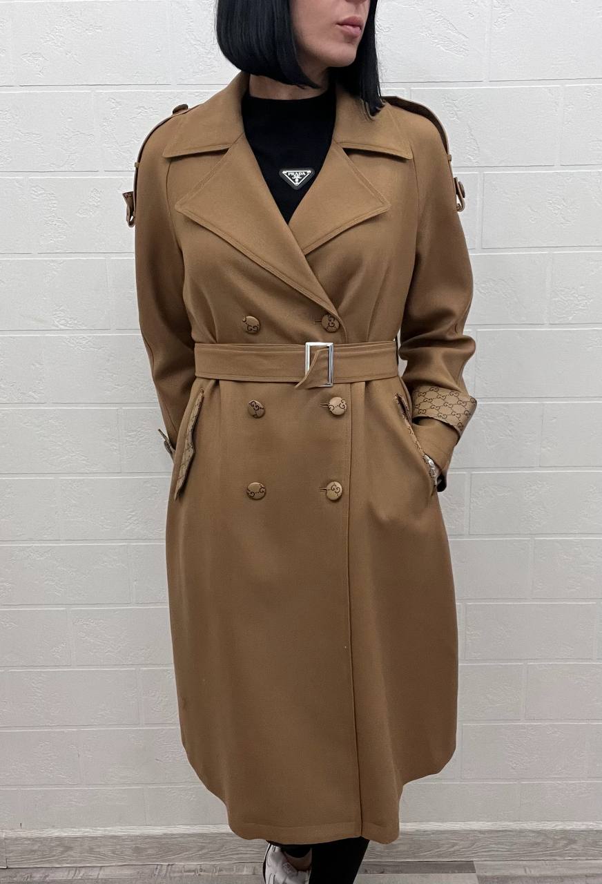 Плащ Gucci LUX-74711 - это элегантное изделие в классическом стиле. Плащ выполнен в нейтральном оттенке коричневого цвета, с акцентом на деталях, таких как пояс с пряжкой и фирменным принтом на подкладке рукавов. Его можно использовать для создания стильных и утонченных образов.