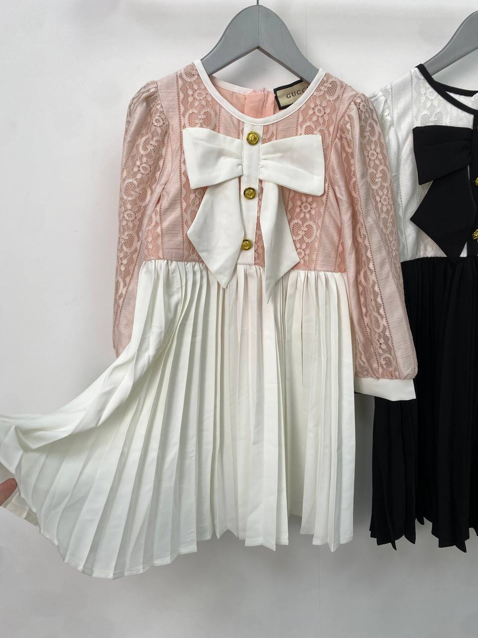 Платье Gucci LUX-74461 — элегантное детское платье от известного бренда. Платье выполнено в нежном розово-белом цвете с элементами кружева и бантом на груди. Отлично подойдет для праздничных мероприятий или особых случаев.
