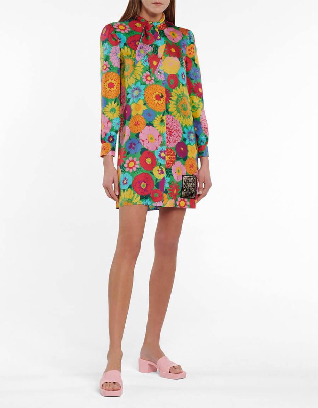 Это яркое и стильное платье Gucci LUX-50728 — настоящий взрыв цвета, украшенное живописным цветочным принтом. Модель с длинными рукавами и элегантным бантом у воротника создает женственный и утонченный образ. Платье идеально подойдет для создания запоминающихся нарядов, добавляя им индивидуальности и модного акцента.