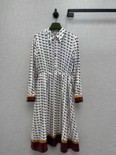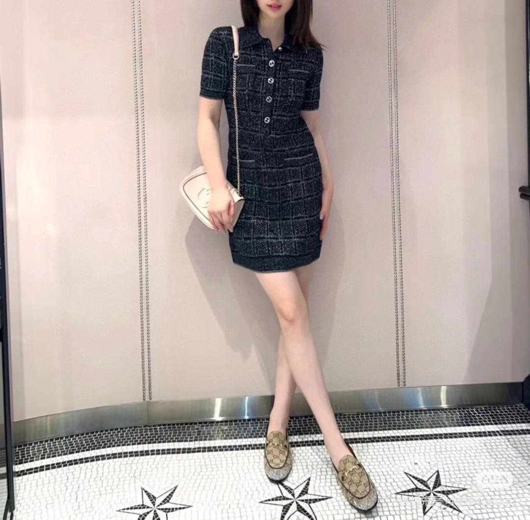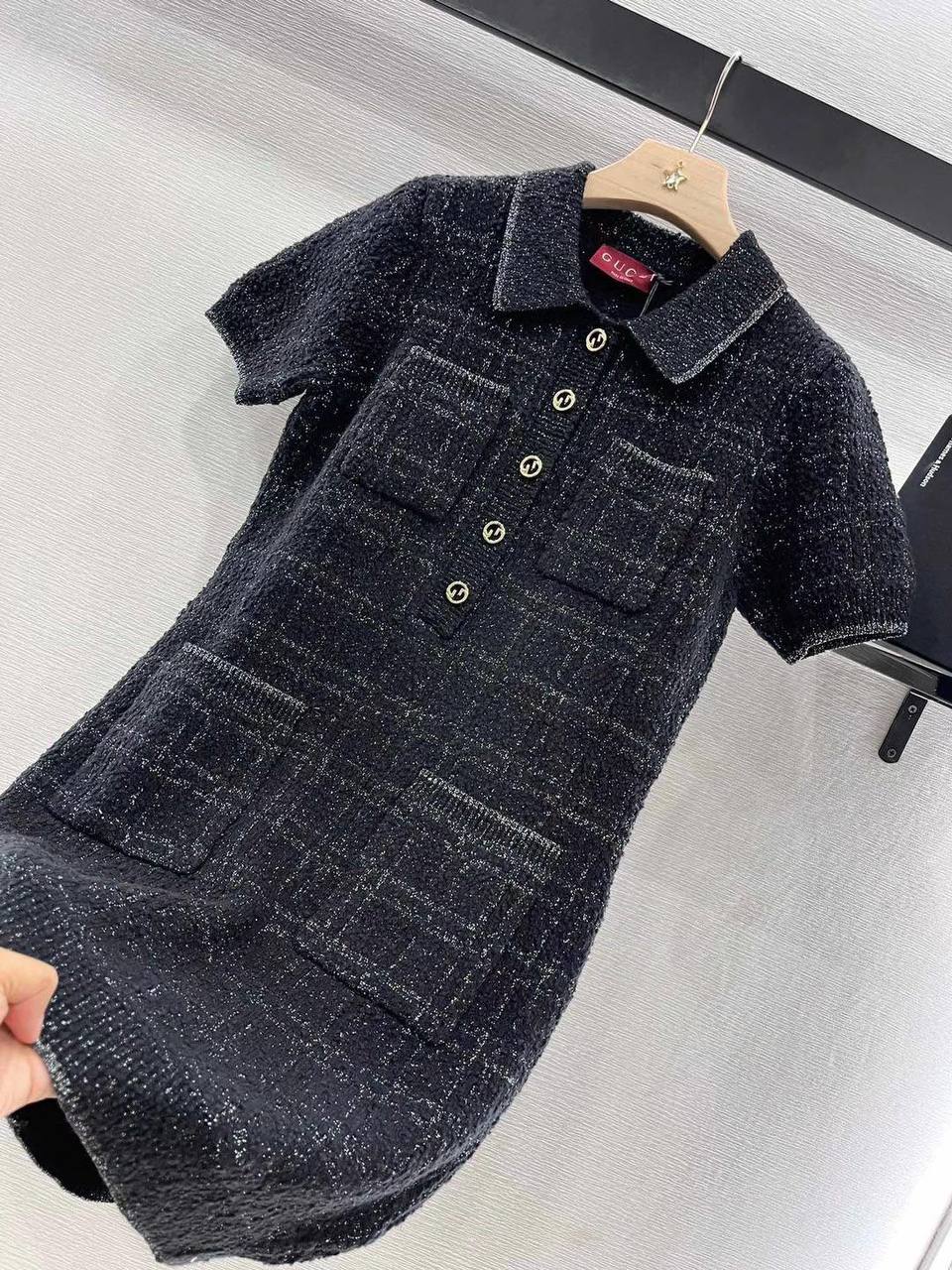 Платье Gucci LUX-113859 – воплощение элегантности и стиля. Это короткое платье выполнено в классическом дизайне, имеет воротник и короткие рукава, создавая изысканный силуэт. Темный цвет и текстура ткани придают ему изысканный вид, делая его подходящим для различных событий.
