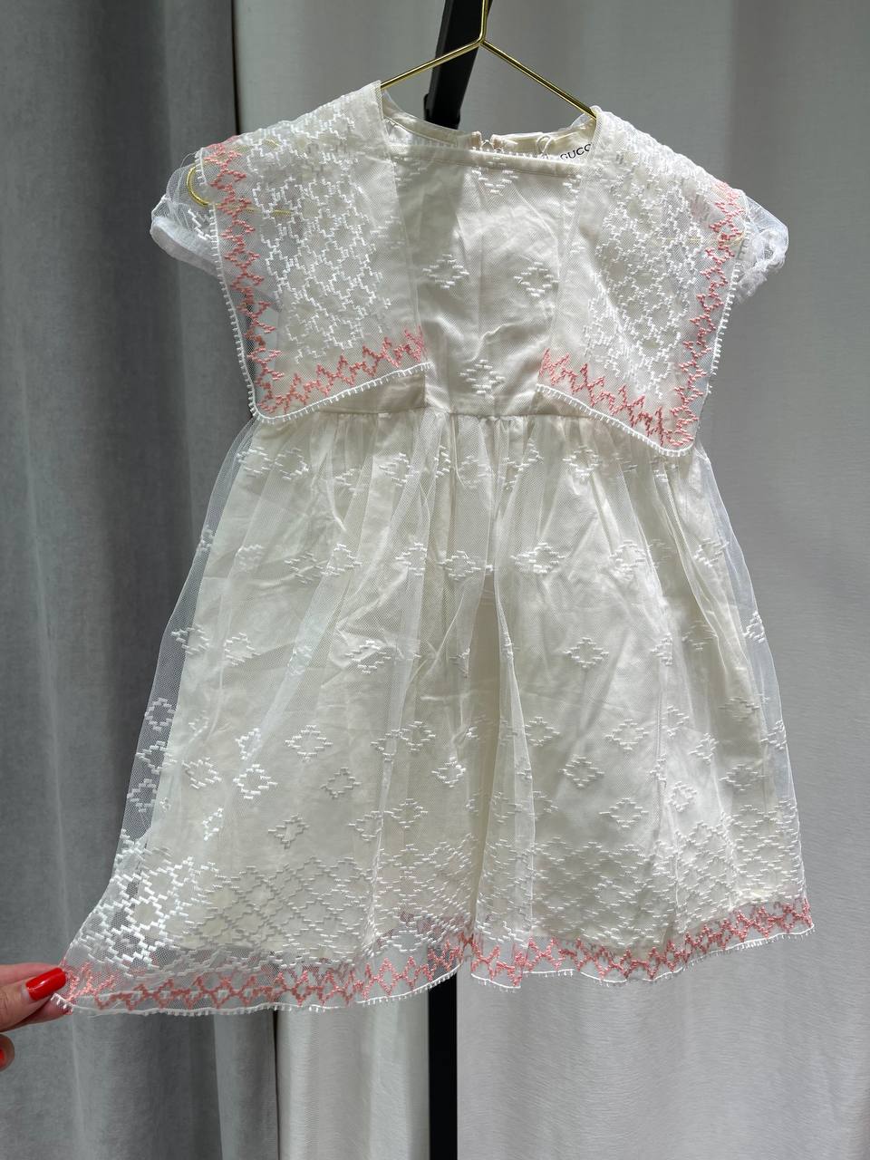 Платье Gucci LUX-118561 — воплощение элегантности и изысканности. Белое платье с нежной текстурой дополнено розовой вышивкой, создающей контрастный и привлекательный акцент. Отлично подойдет для торжественных случаев или летних прогулок.