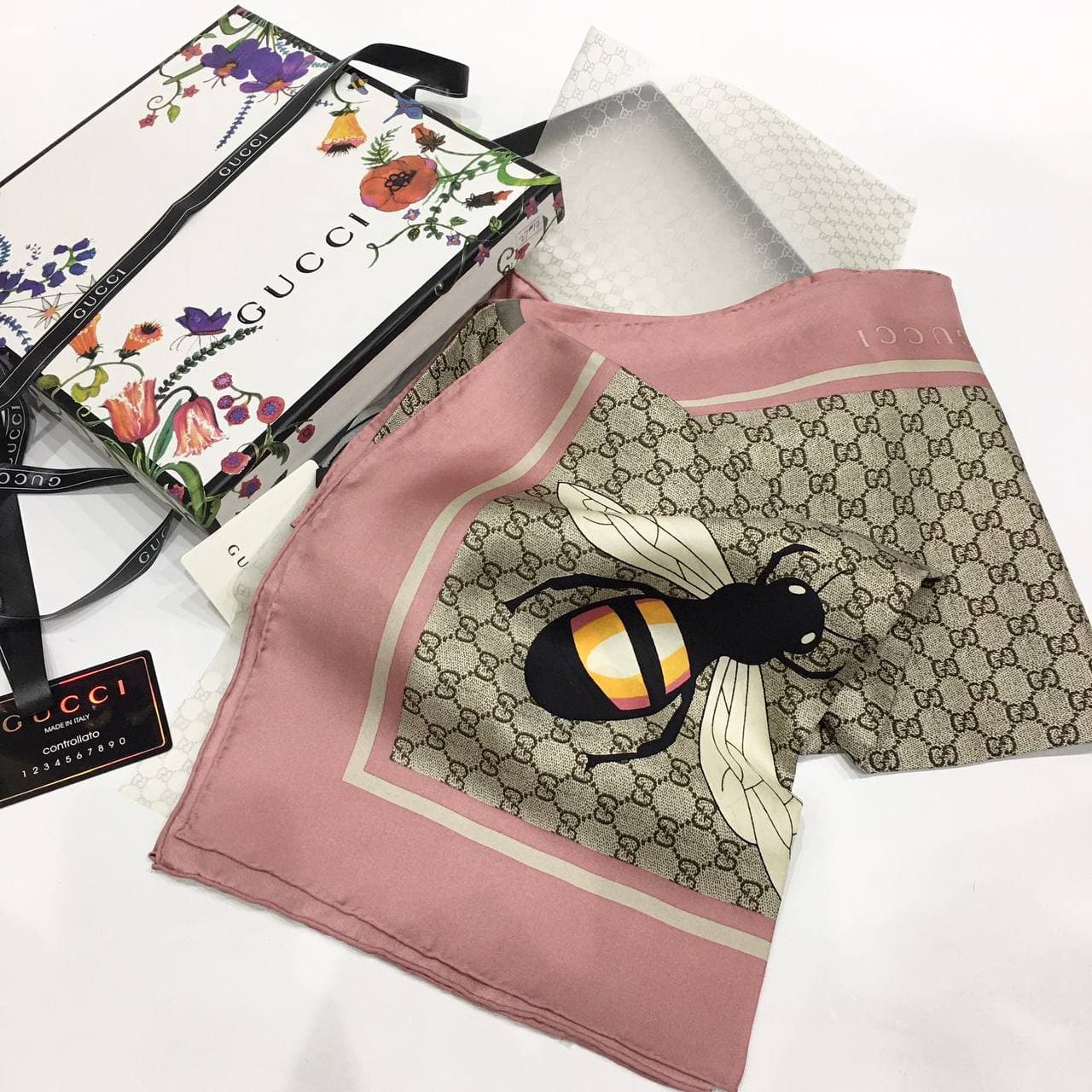 Этот шелковый платок Gucci LUX-64066 представляет собой изысканный аксессуар, сочетающий в себе культовый дизайн бренда и уникальный принт с изображением пчелы. Нежный розовый фон обрамлен классическим узором GG Supreme, создавая элегантное и узнаваемое полотно. Главным акцентом является яркая, детализированная иллюстрация пчелы, придающая платку игривость и оригинальность. Он идеально дополнит как повседневные, так и вечерние образы, добавляя им нотку роскоши и неповторимого стиля.