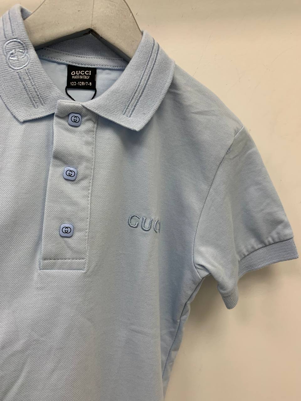 Поло Gucci LUX-93057 — это стильная и элегантная модель для повседневного гардероба. Поло выполнено в нежно-голубом цвете с текстурой, создающей интересный визуальный эффект. Отлично подойдет для создания образов в стиле casual и smart casual.