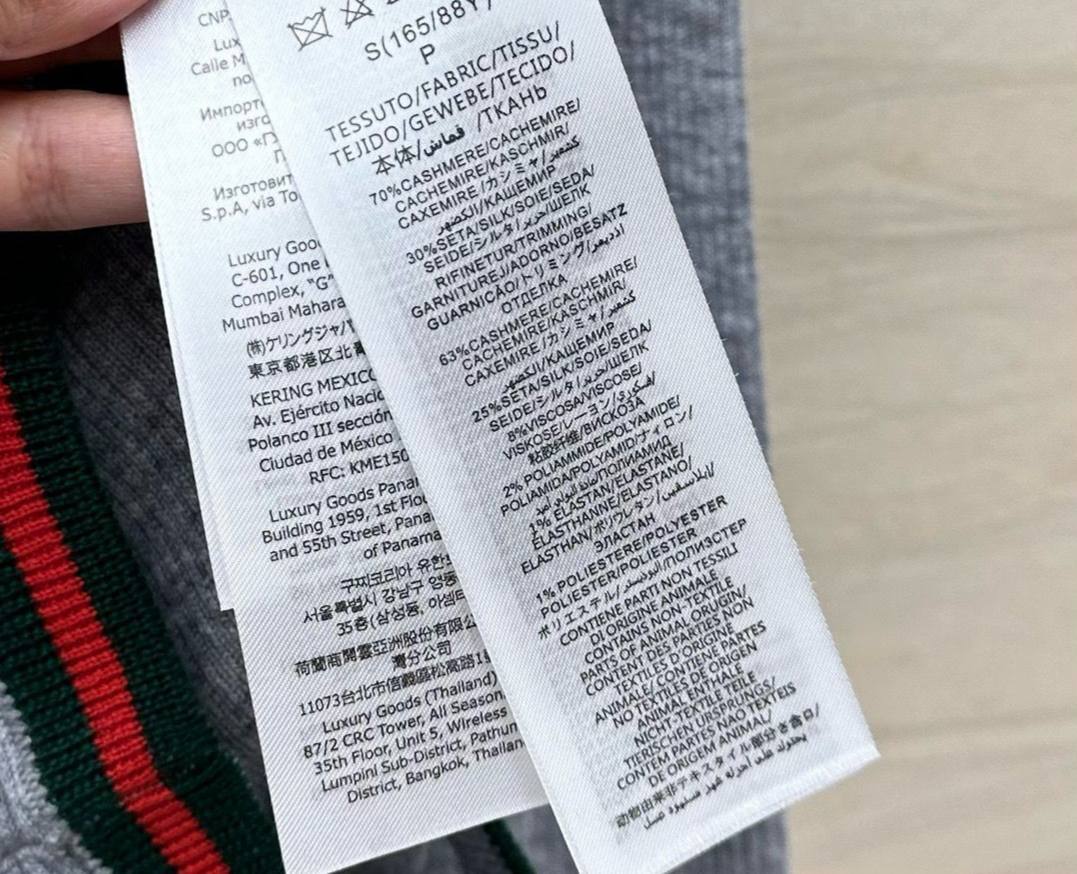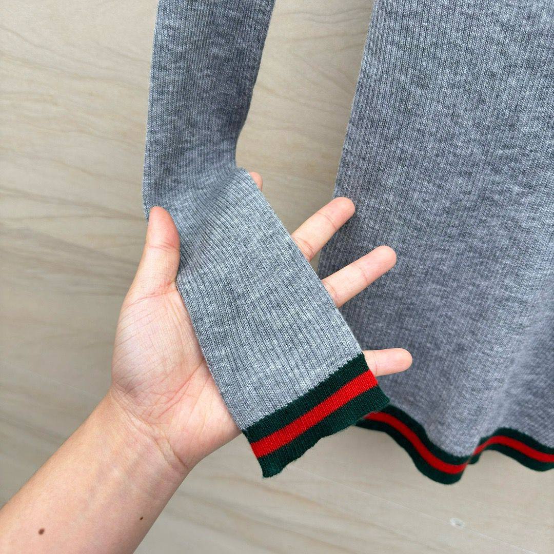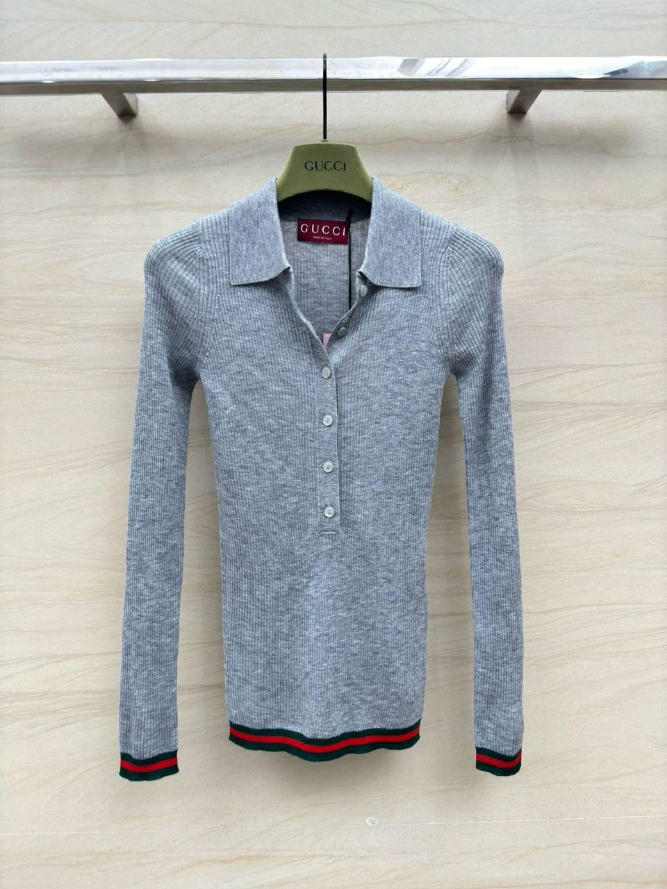 Поло Gucci LUX-114641 представляет собой элегантную женскую кофту-поло серого цвета с длинными рукавами. Дизайн выполнен в стиле кэжуал, что позволяет сочетать его с различными элементами гардероба. Текстура изделия рельефная, что придает ему особый шарм.