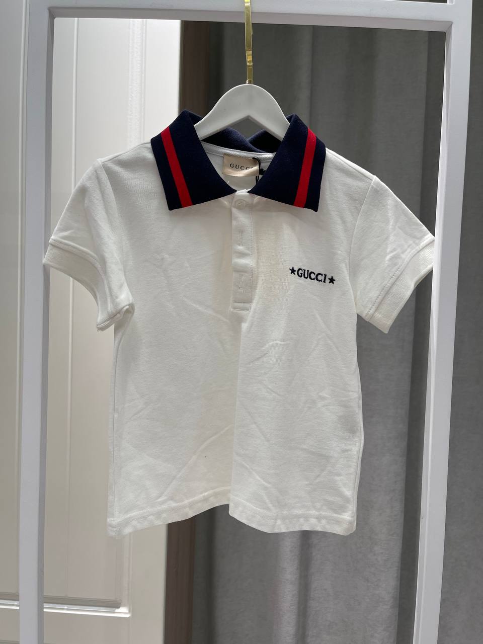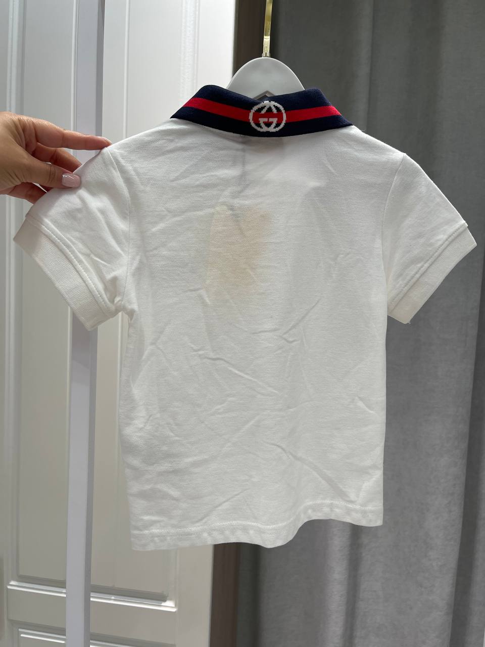 Поло Gucci LUX-120024 - это стильный предмет гардероба, который воплощает в себе элегантность и комфорт. Классический крой, белый цвет, и контрастные детали на воротнике делают эту модель узнаваемой. Подходит для повседневной носки и создания различных образов.
