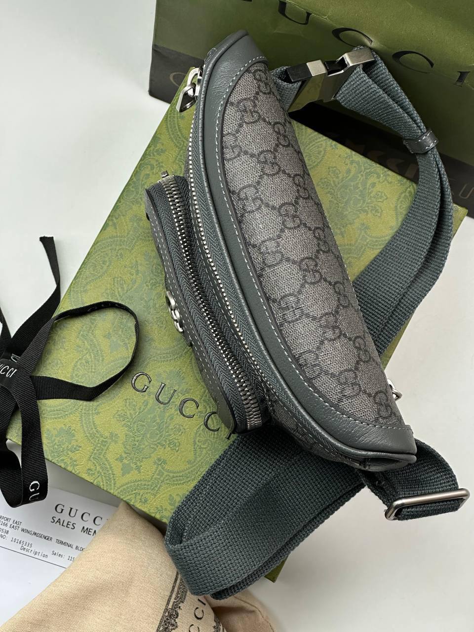 Поясная сумка Gucci LUX-94839 выполнена в классическом стиле, сочетая практичность и узнаваемый дизайн. Сумка выполнена в сером цвете с фирменным узором бренда. Эта модель идеально подходит для повседневного использования, обеспечивая комфорт и стиль.