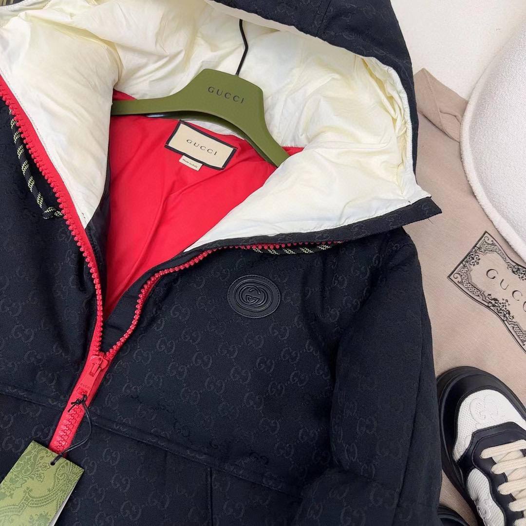 Пуховик Gucci LUX-95110 - это стильный элемент гардероба от известного бренда. Черный пуховик с фирменным принтом, дополненный контрастной красной молнией, воплощает в себе элегантность и комфорт. Он идеально подходит для создания модных образов в холодное время года.