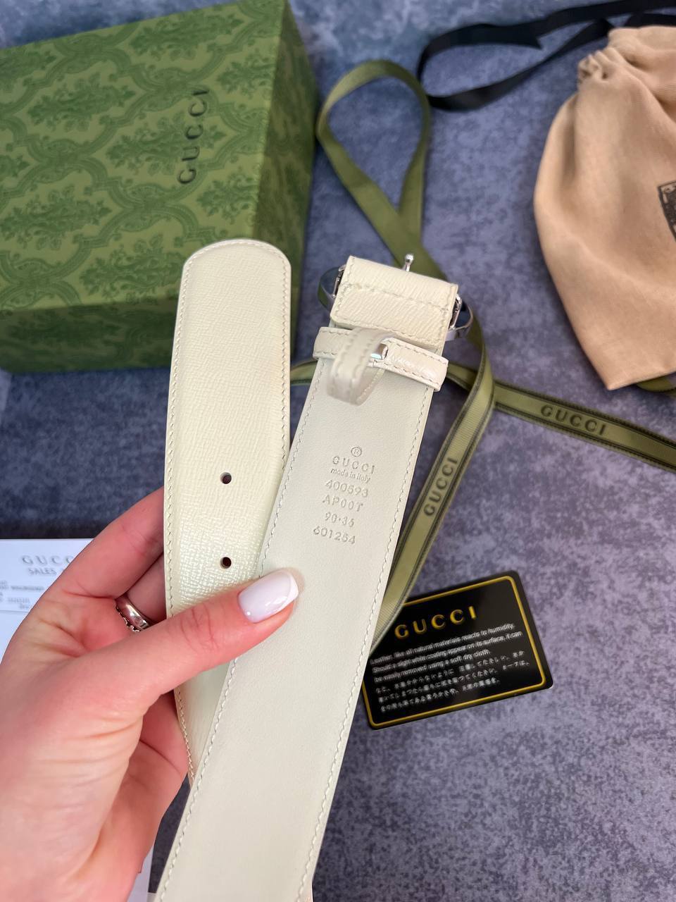 Ремень Gucci LUX-88098 — элегантный аксессуар в стиле casual. Бежевый ремень дополнен металлической пряжкой с логотипом бренда. Идеально подходит для повседневного использования, подчеркивая индивидуальность образа.