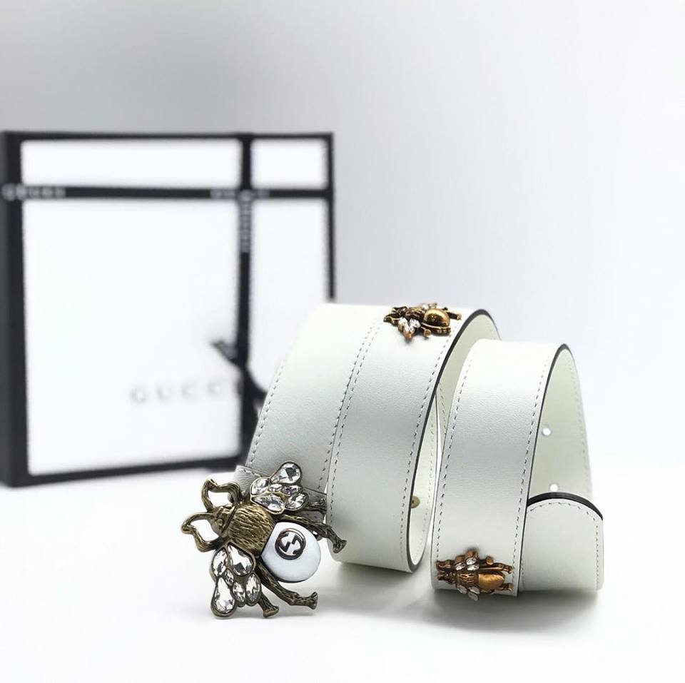 Ремень женский Gucci LUX-12600 — это изысканный аксессуар, выполненный в классическом стиле, который добавит утонченности любому образу. Декоративная пряжка в виде пчелы с кристаллами придает ремню уникальность и роскошный вид.