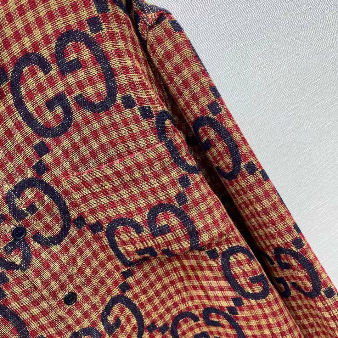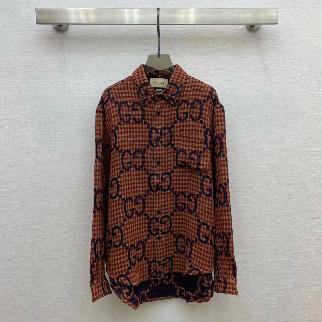 Рубашка Gucci LUX-107276 представляет собой стильную рубашку, выполненную в узнаваемом дизайне бренда. Её расцветка сочетает в себе оттенки красного и синего, с принтом логотипа Gucci, расположенным по всей поверхности. Рубашка подойдёт как для повседневной носки, так и для создания более формальных образов.