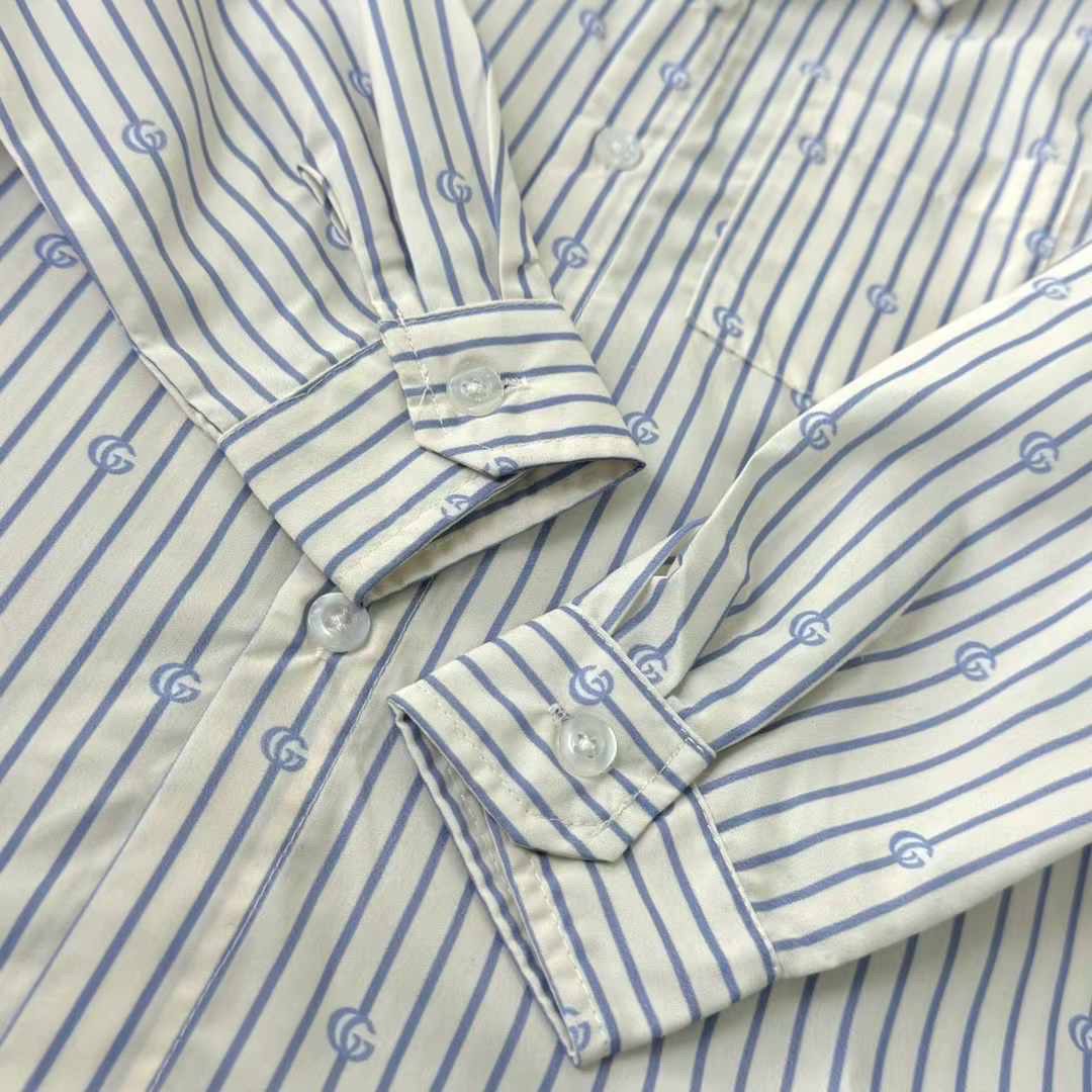 Рубашка Gucci LUX-112973 – это стильная рубашка в полоску, выполненная в классическом стиле. Белый фон с тонкими голубыми полосками, дополненный повторяющимся узором с логотипом бренда, придает изделию элегантность и изысканность. Рубашка может быть идеальным выбором для различных случаев, от повседневной носки до более формальных мероприятий.