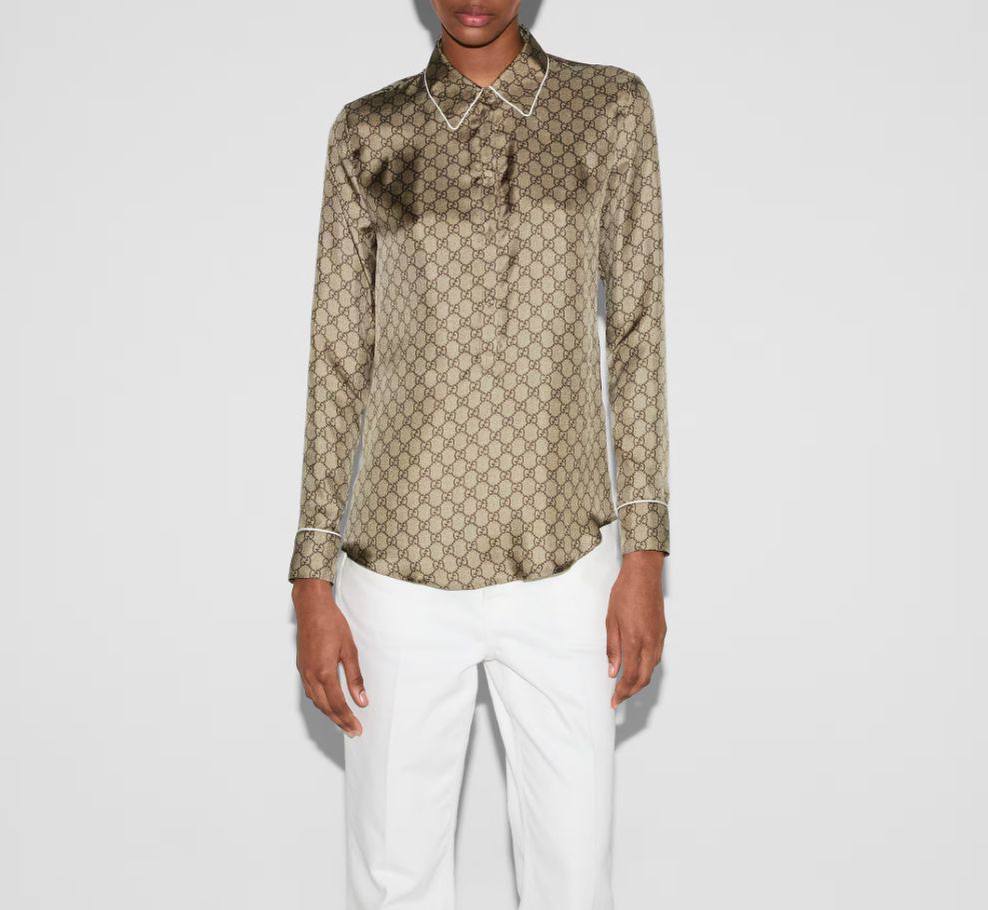 Рубашка Gucci LUX-117641 представляет собой элегантный предмет гардероба в классическом стиле. Рубашка выполнена в коричневом цвете с фирменным принтом бренда. Идеально подойдет для создания как повседневных, так и более формальных образов.