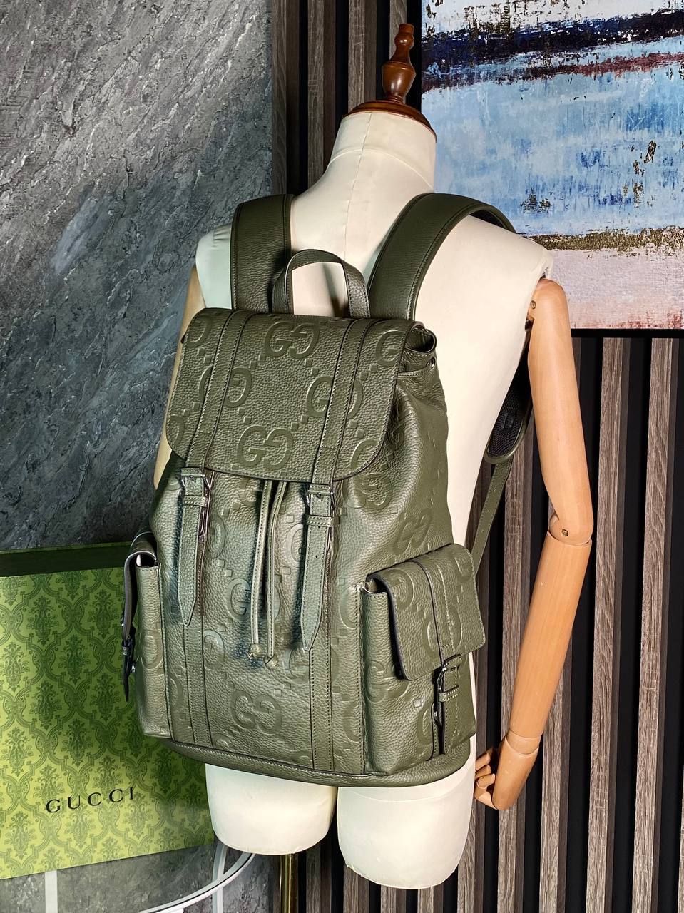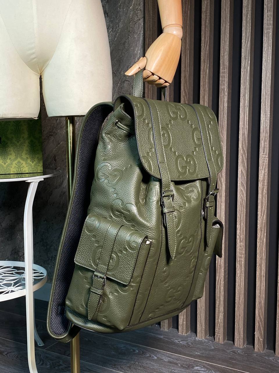 Рюкзак Gucci LUX-114104 представлен в классическом стиле. Рюкзак выполнен в оливковом цвете с тиснением в виде фирменного логотипа бренда по всей поверхности. Имеет прямоугольную форму с откидным клапаном и множеством функциональных карманов.