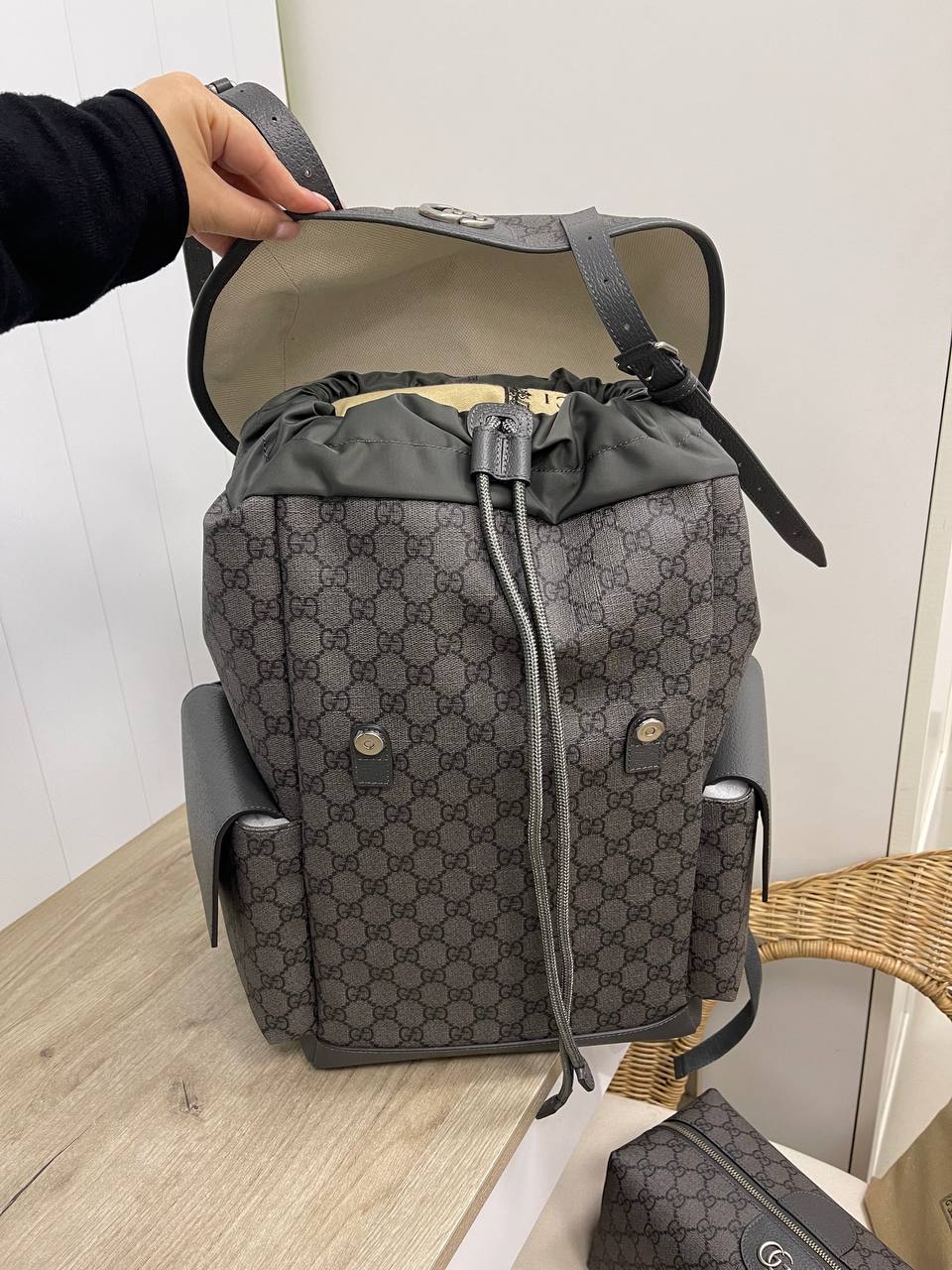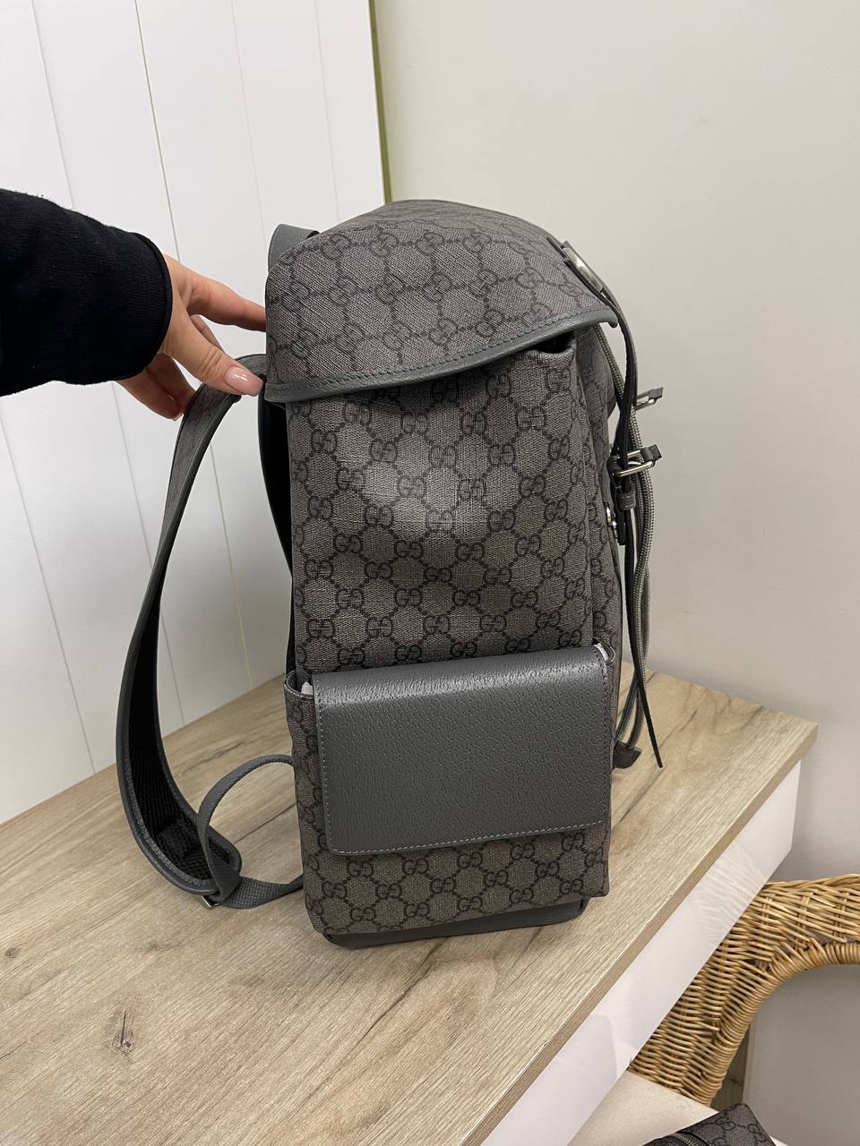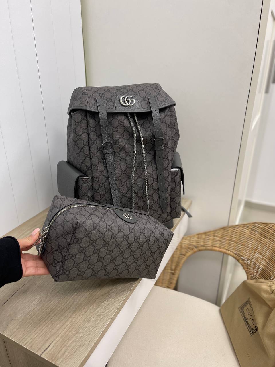 Рюкзак Gucci LUX-83669 представляет собой стильный аксессуар для повседневного использования. Темно-серый цвет рюкзака с узнаваемым узором бренда придает ему элегантный вид. Этот рюкзак создан для комфортного ношения и хранения вещей.