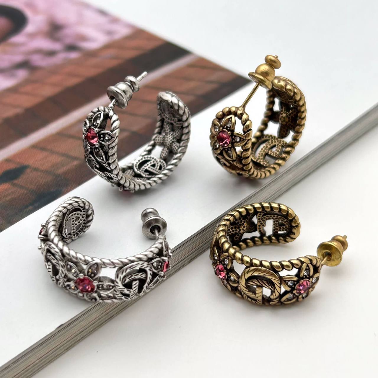 Серьги Gucci LUX-100362 – это изысканное украшение, сочетающее в себе классический стиль и современный дизайн. Серьги имеют золотистый цвет и украшены розовыми камнями. Элегантный аксессуар для создания неповторимого образа.