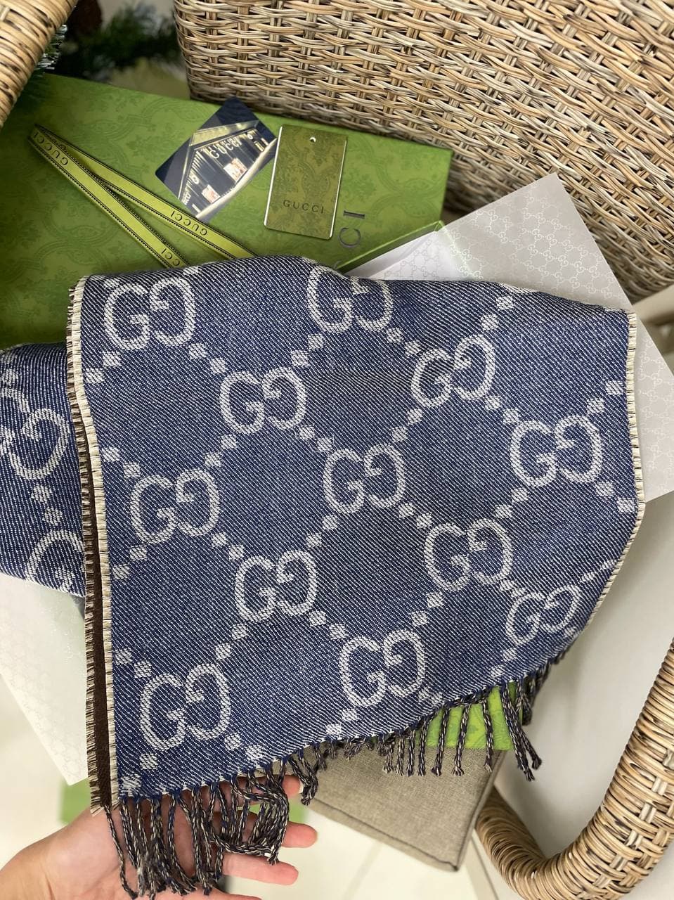 Шарф Gucci LUX-61589 представляет собой стильный аксессуар, выполненный в узнаваемом дизайне бренда. Шарф украшен фирменным узором GG, который делает его мгновенно узнаваемым и добавляет элемент роскоши. Этот аксессуар идеально подойдет для тех, кто ценит элегантность и стремится подчеркнуть свой уникальный стиль.
