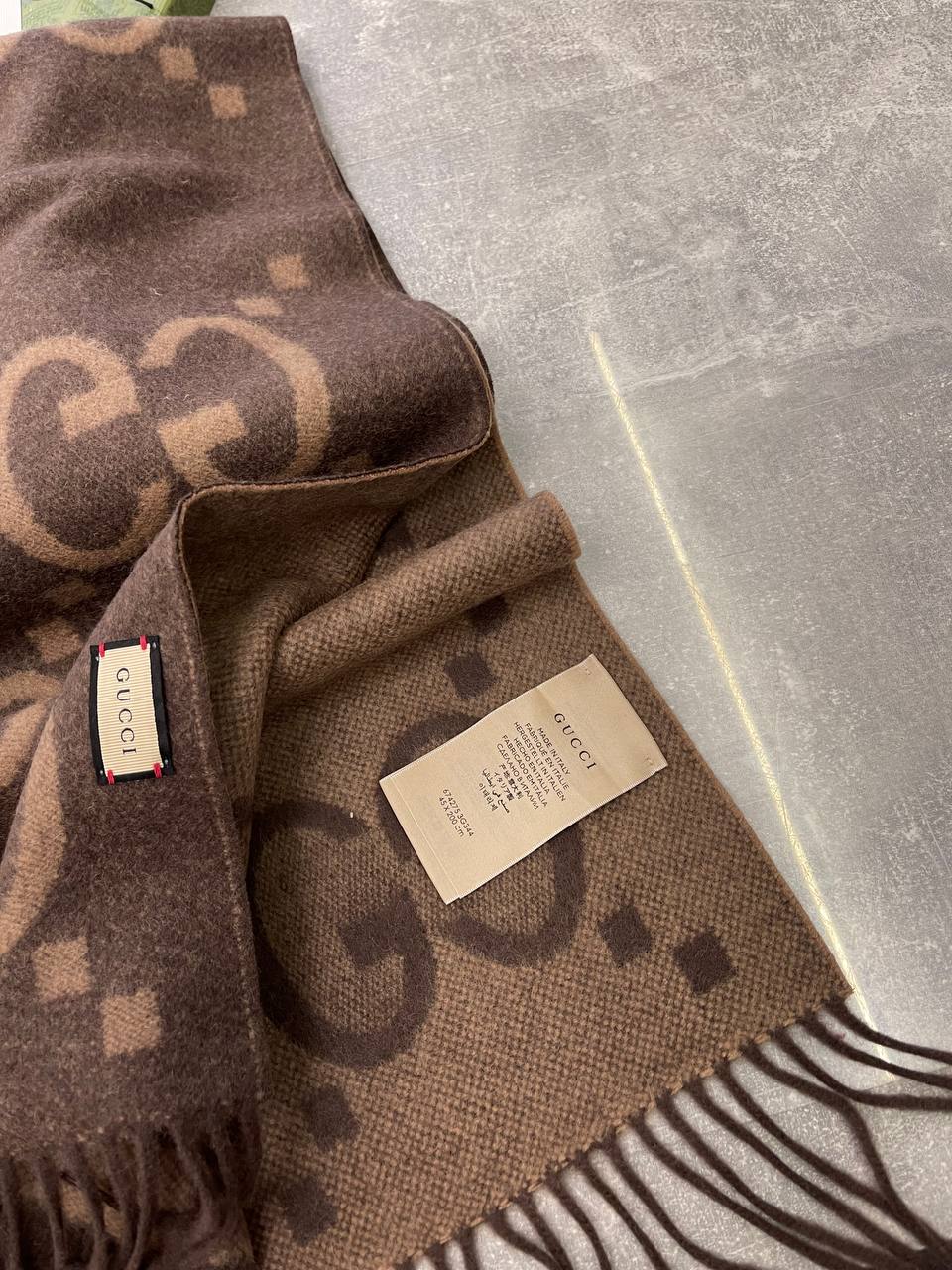 Шарф Gucci LUX-99672 представляет собой изысканный аксессуар в фирменном стиле. Шарф выполнен в коричневых оттенках с узнаваемым логотипом бренда. Текстура шарфа мягкая и приятная на ощупь, идеален для создания элегантных образов.