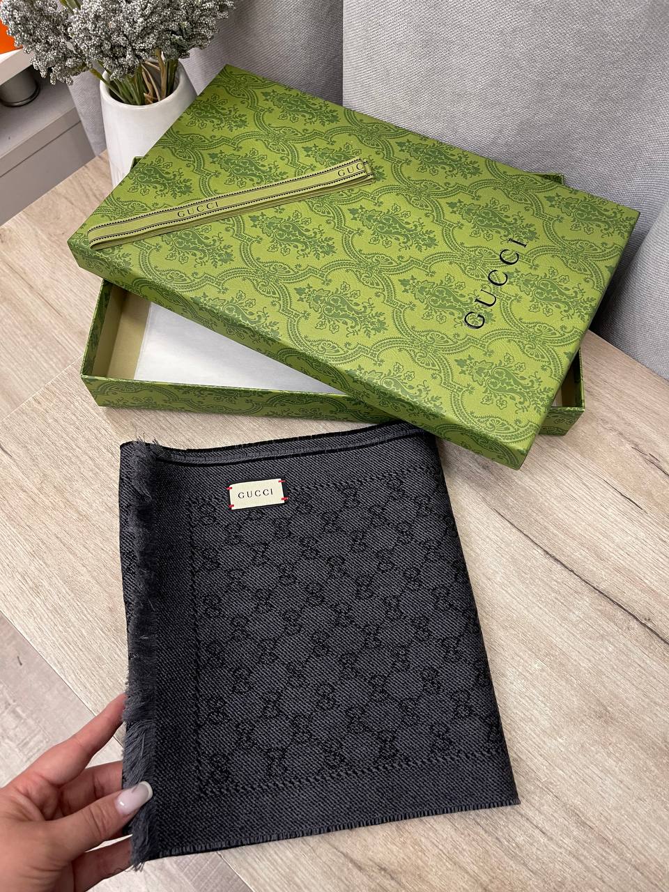 Шарф Gucci LUX-114168 — это элегантный аксессуар, который подчеркнет ваш стиль. Темно-серый шарф украшен логотипом бренда. Его можно использовать как дополнение к повседневному образу, так и в качестве стильного элемента вечернего наряда.
