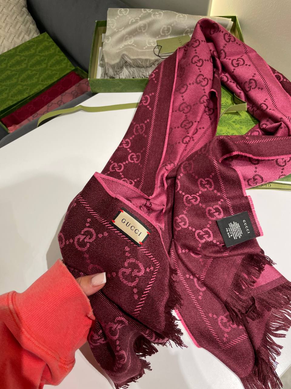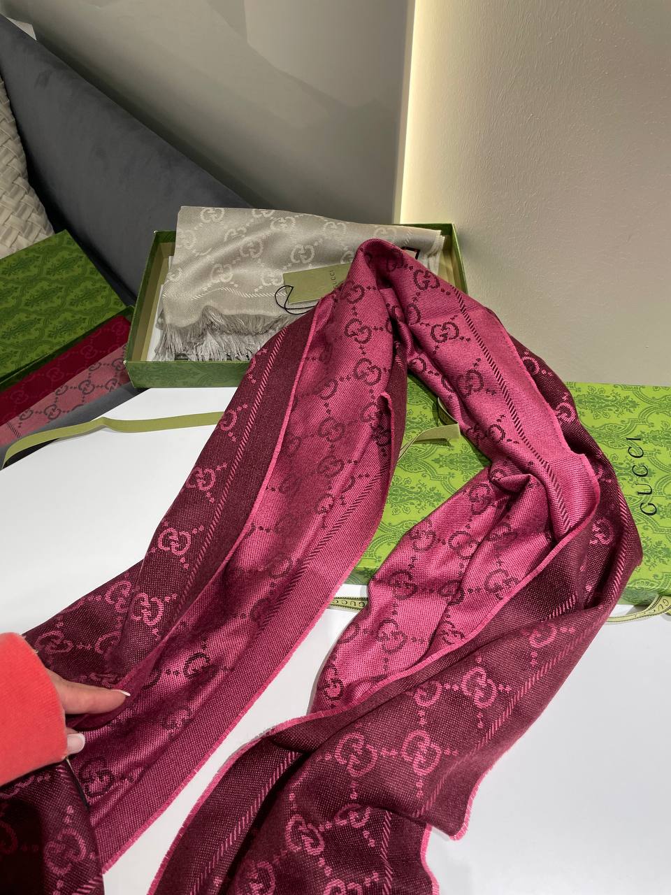 Шарф Gucci LUX-125900 — это стильный аксессуар, который добавит изысканности в ваш образ. Шарф с узнаваемым логотипом бренда подчеркнет ваш безупречный вкус.