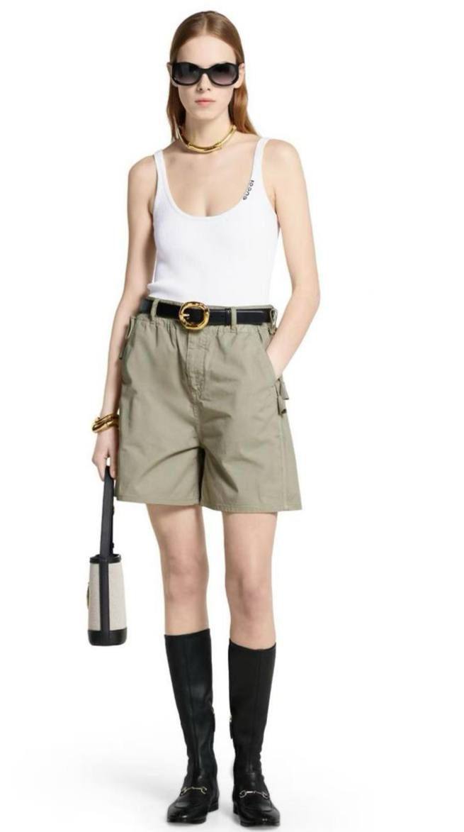 Шорты Gucci LUX-119191 — это стильный элемент гардероба, представленный в классическом стиле. Шорты выполнены в хаки цвете, имеют прямой крой. Отлично подойдут для создания повседневных образов.
