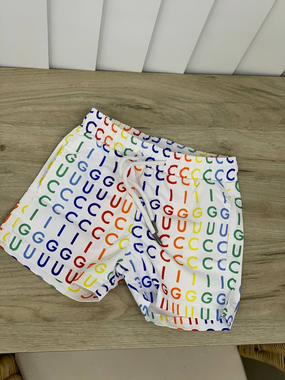 Шорты для плавания Gucci LUX-68977 представляют собой стильный и яркий элемент пляжного гардероба. Изделие выполнено в узнаваемом дизайне бренда Gucci, украшено повторяющимся принтом из букв "GG", "UU", "CC", "II". Такая модель идеально подойдет для отдыха у воды, будь то бассейн или морской пляж, добавляя образу игривости и роскоши.